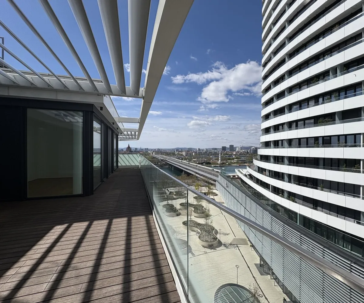 DANUBEVIEW umfasst insgesamt 159 Mietwohnungen mit Größen zwischen 30 m² und 150 m², verteilt auf 1 bis 4 Zimmer. Großzügige Grundrisse und lichtdurchflutete Räume mit weitläufigen Fensterfronten eröffnen atemberaubende Ausblicke auf die Donau und die City.