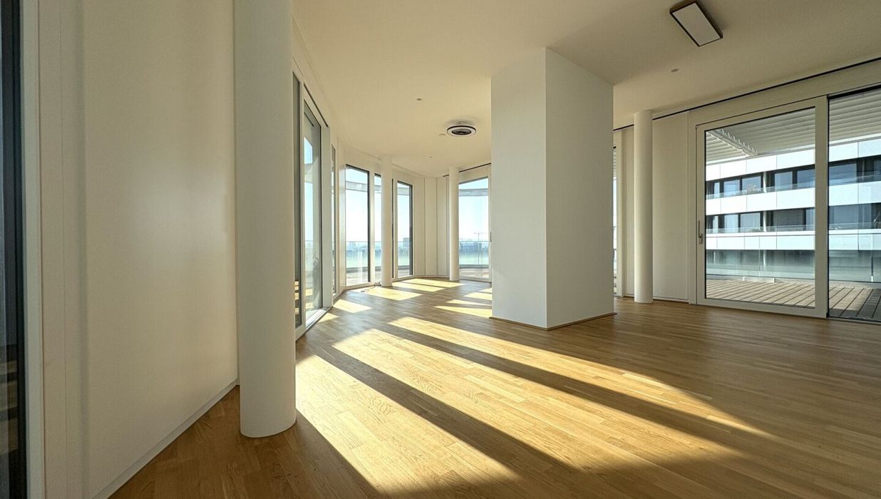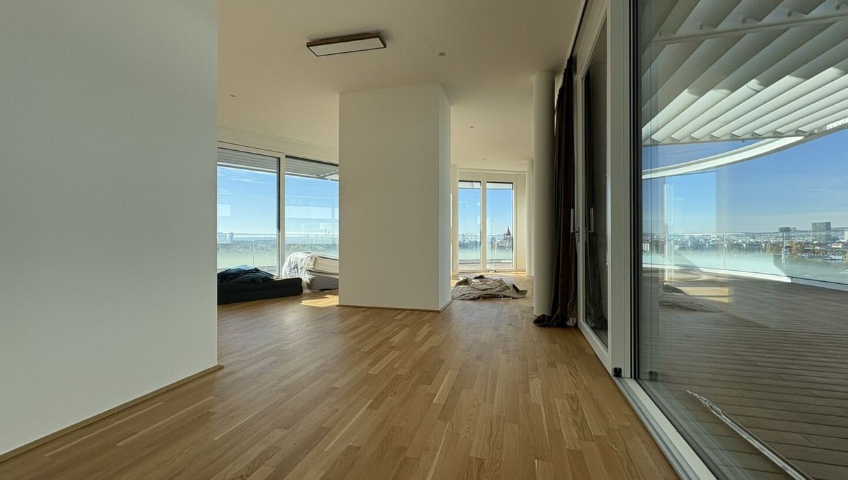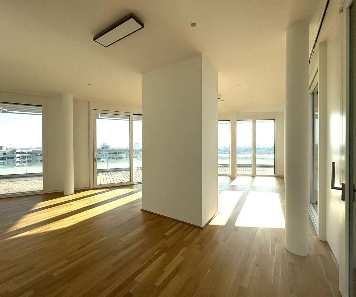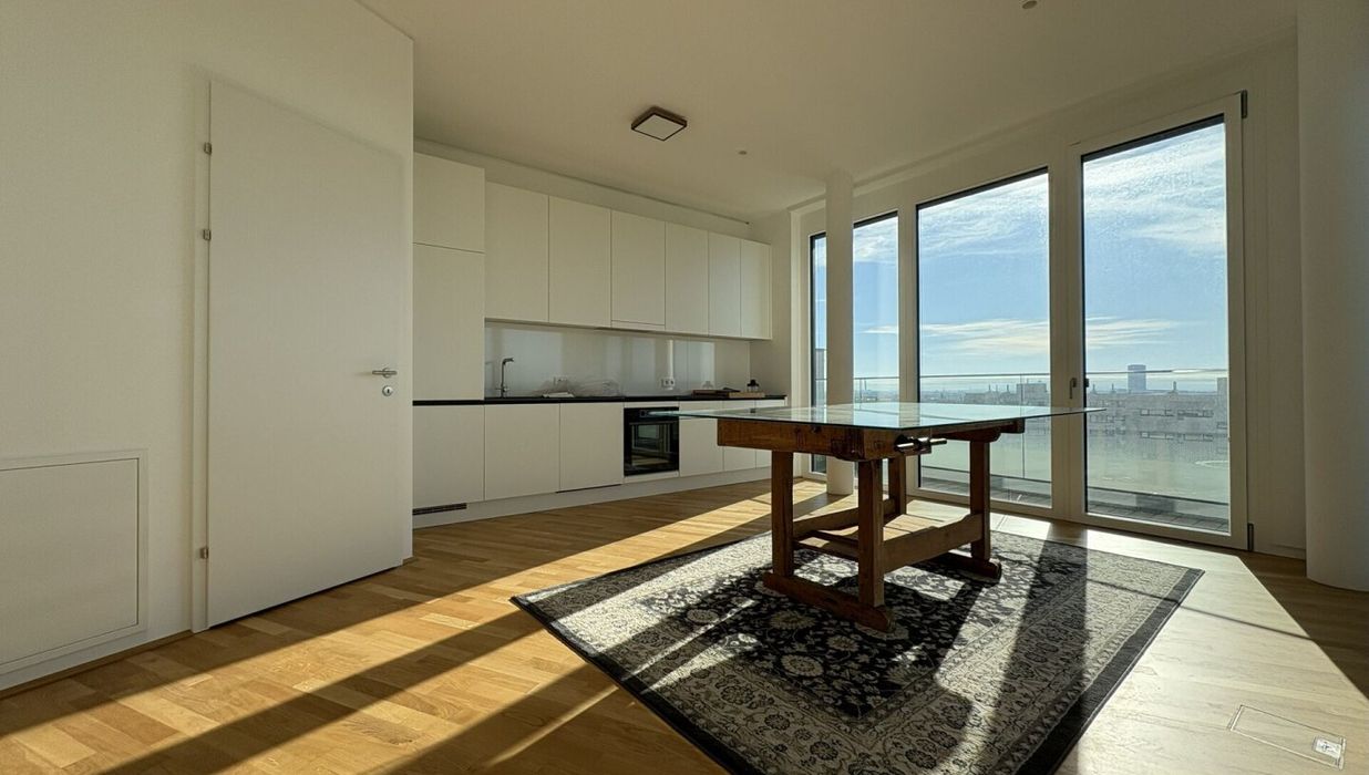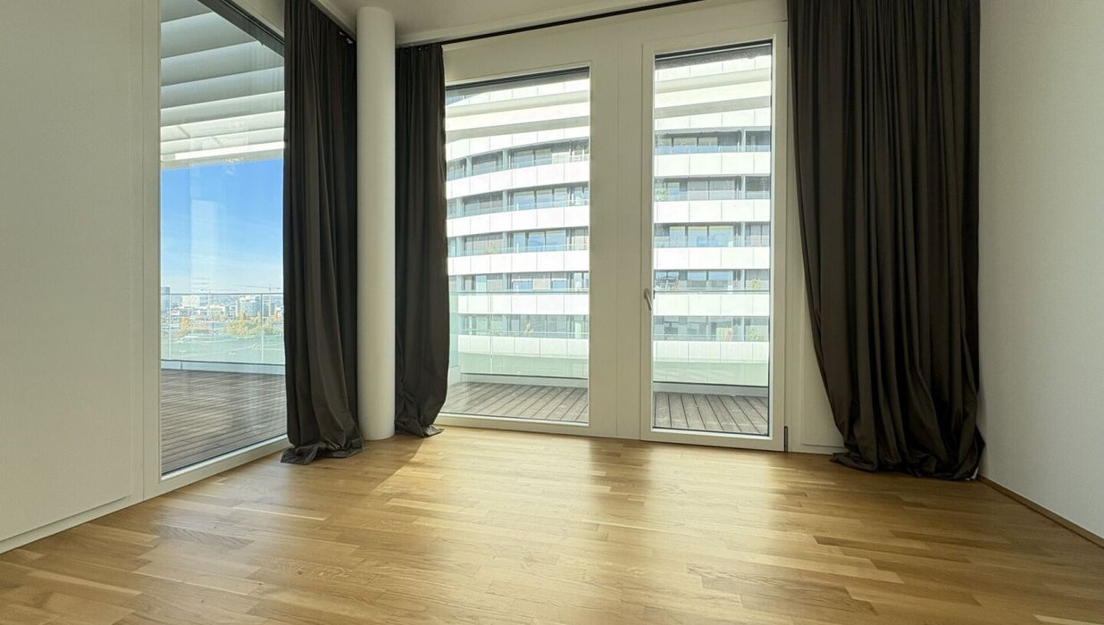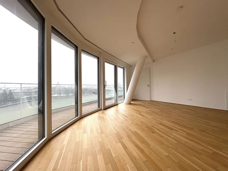 DANUBEVIEW umfasst insgesamt 159 Mietwohnungen mit Größen zwischen 30 m² und 150 m², verteilt auf 1 bis 4 Zimmer. Großzügige Grundrisse und lichtdurchflutete Räume mit weitläufigen Fensterfronten eröffnen atemberaubende Ausblicke auf die Donau und die City.