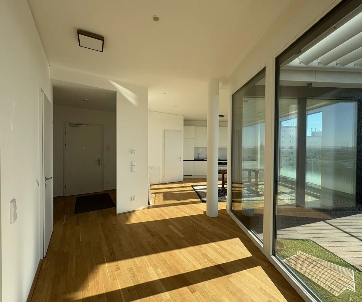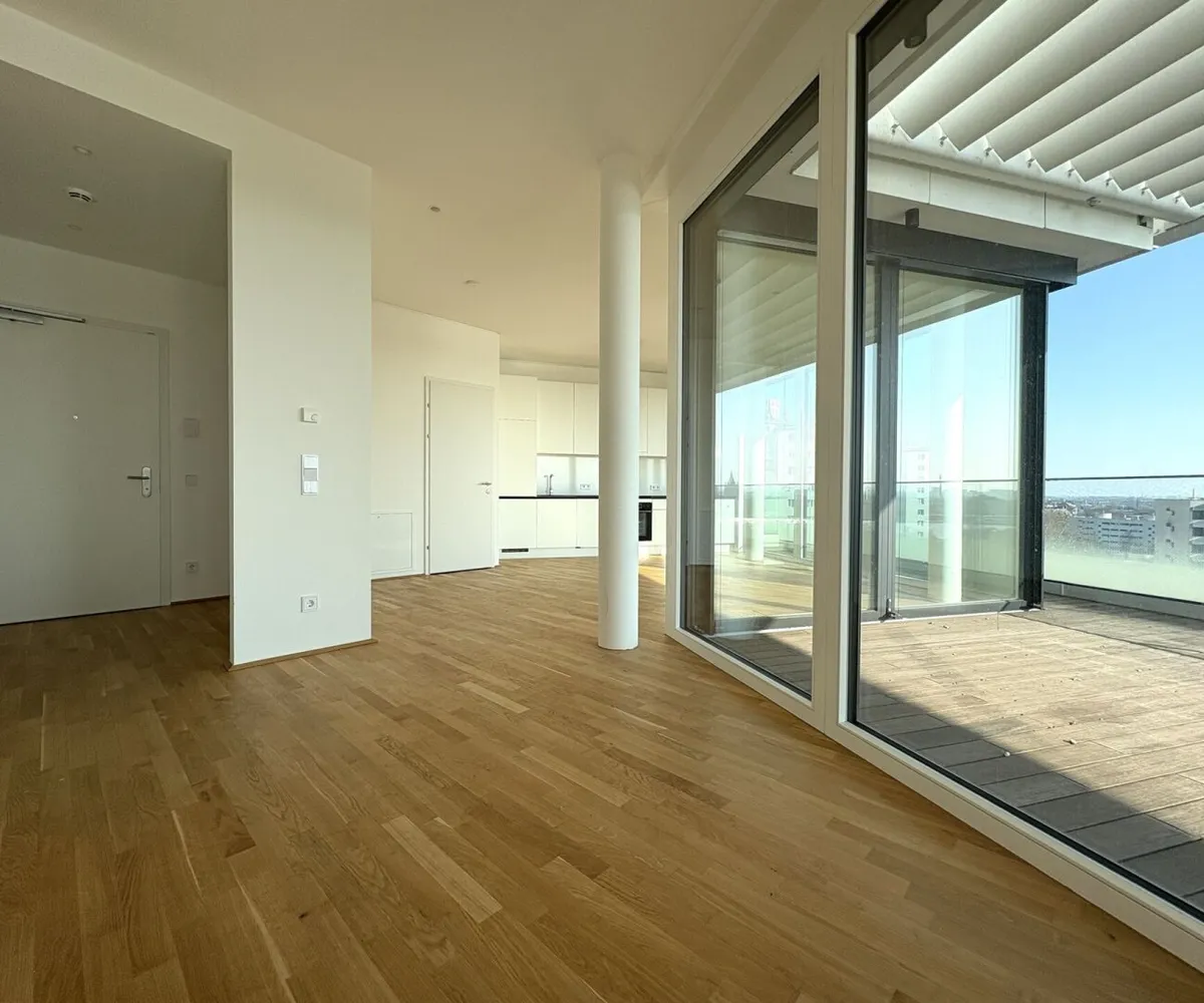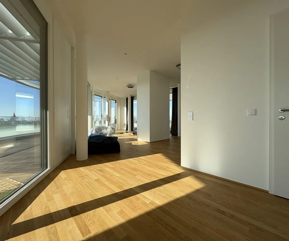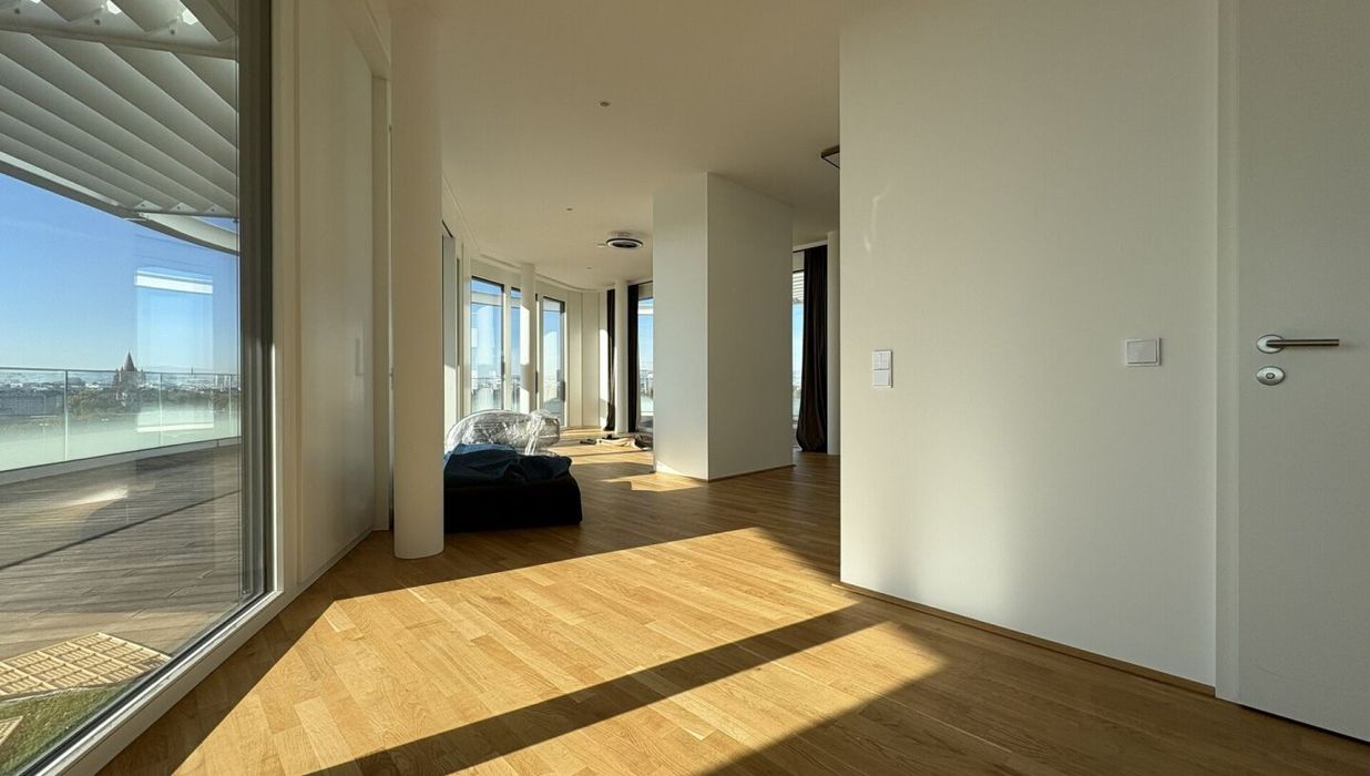 DANUBEVIEW umfasst insgesamt 159 Mietwohnungen mit Größen zwischen 30 m² und 150 m², verteilt auf 1 bis 4 Zimmer. Großzügige Grundrisse und lichtdurchflutete Räume mit weitläufigen Fensterfronten eröffnen atemberaubende Ausblicke auf die Donau und die City.