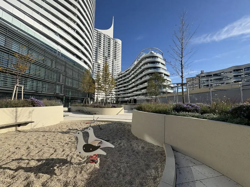 Ein Sprung ins erfrischende Wasser vor der Haustür, eine Radtour auf der Donauinsel oder ein Abendessen mit Sonnenuntergang am Wasser – hier wird Lebensqualität neu definiert. Die ausgezeichnete Infrastruktur ermöglicht kurze Wege: Dank der U1-Station direkt vor der Tür erreicht man die Wiener Innenstadt in nur zehn Minuten.