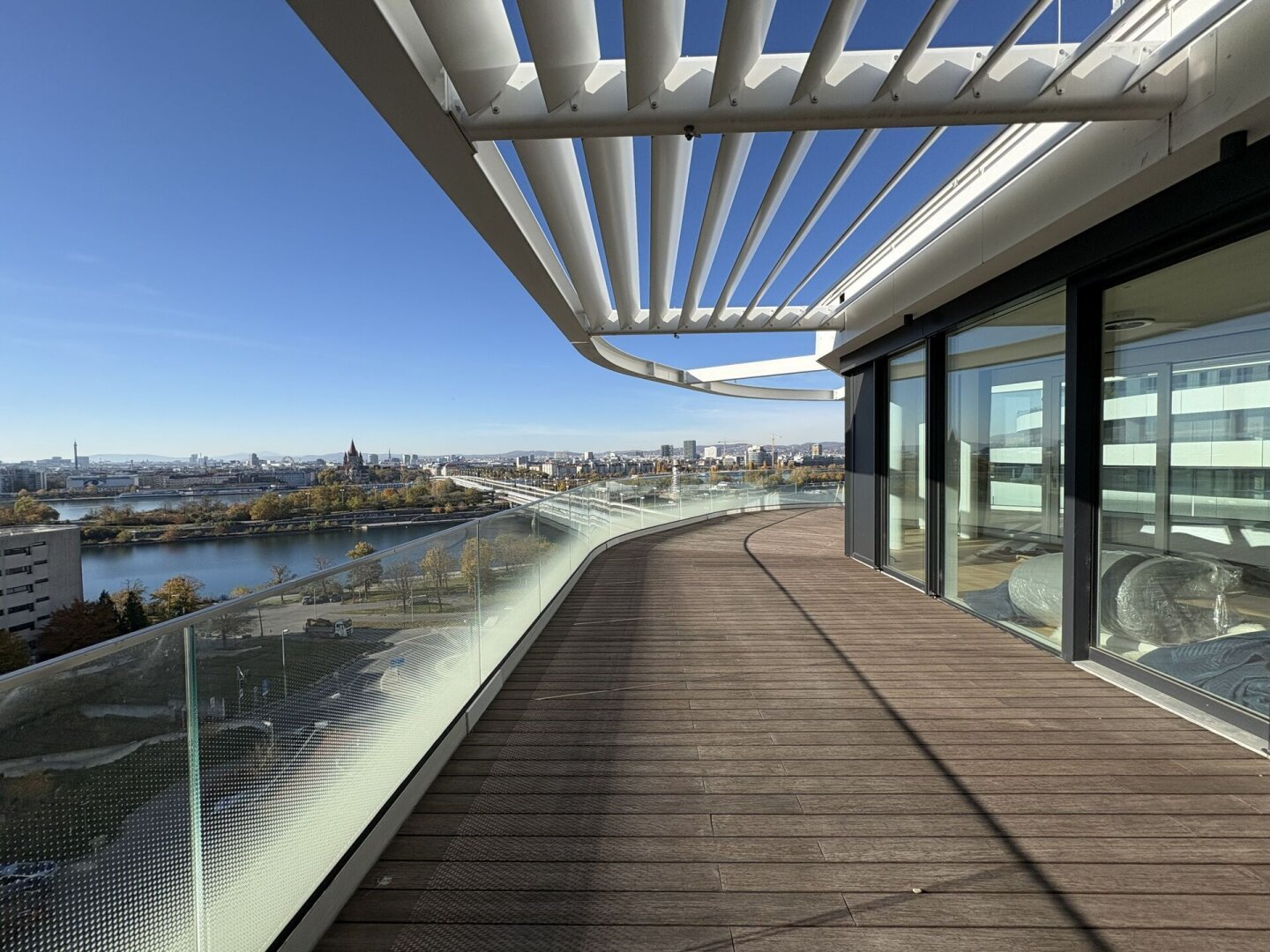 Die Lage an der Neuen Donau vereint Natur, Urbanität und internationale Atmosphäre.