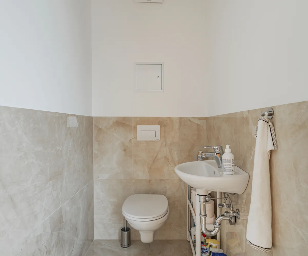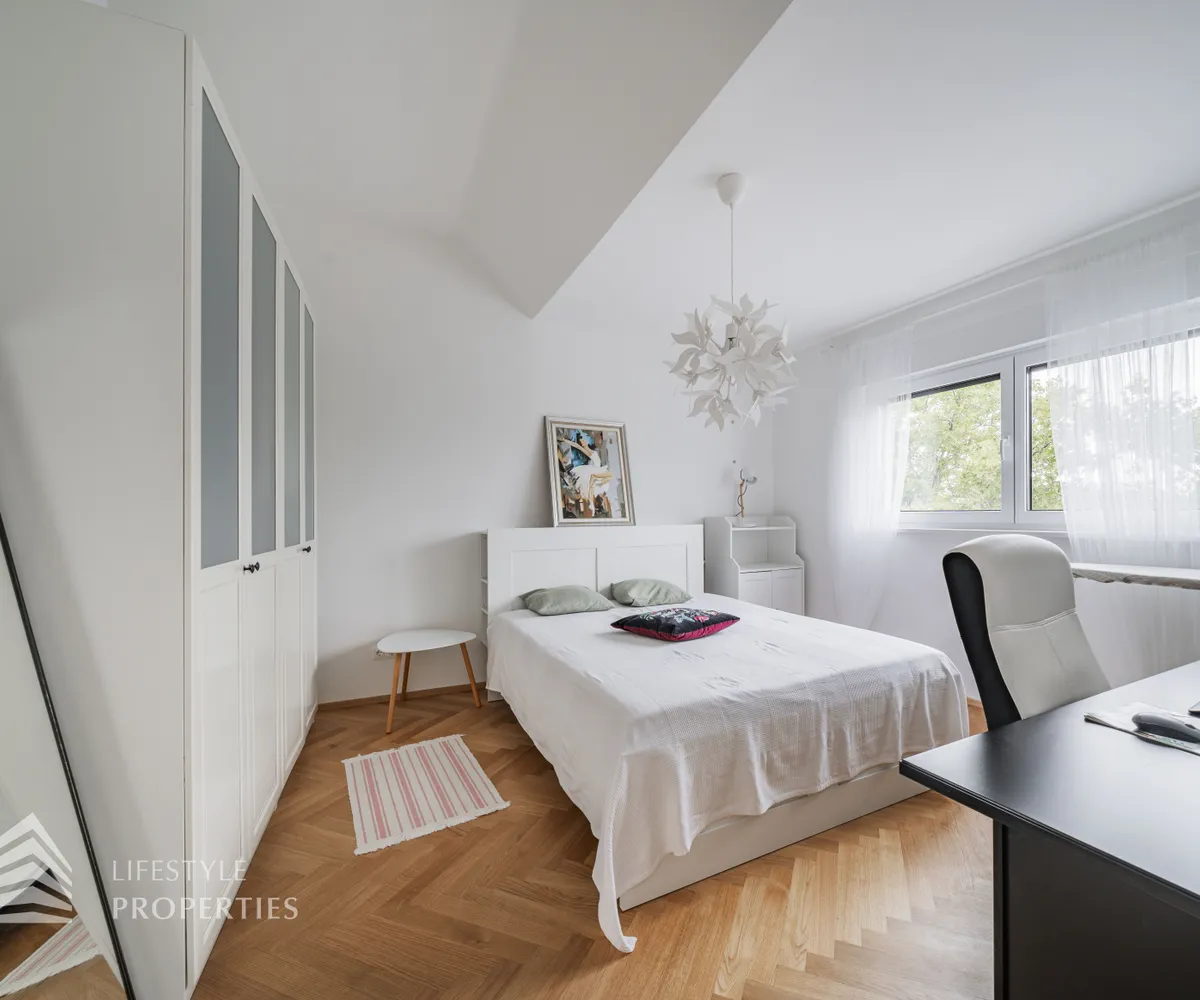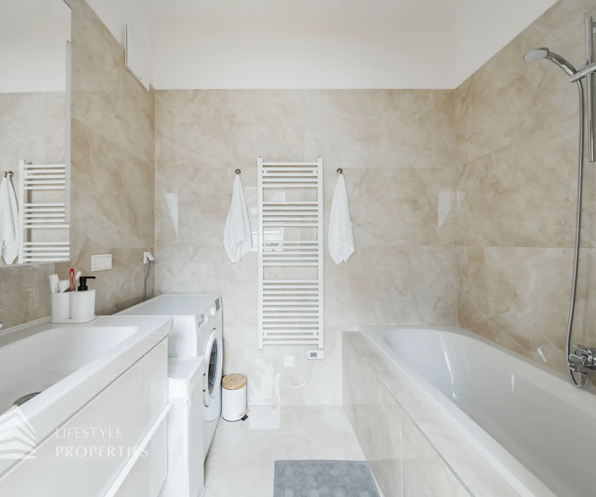 Die Haupträume der Wohnung sind mit hochwertigem Fischgrätparkett ausgekleidet, in den Nassräumen sind moderne Fliesen verlegt. Das Haus verfügt über eine Wärmepumpe, eine Photovoltaikanlage sowie elektrisch bedienbare Außenrollos. Der Wohnung ist ein Kellerabteil mit ca. 2 m² zugeordnet. Es besteht zudem die Möglichkeit einen KFZ-Stellplatz in der hauseigenen Tiefgarage für € 29.000,00 zu erwerben.