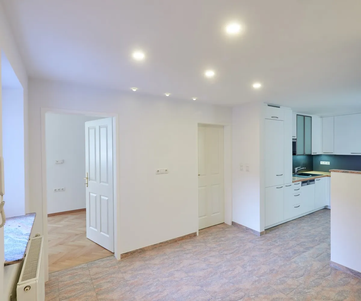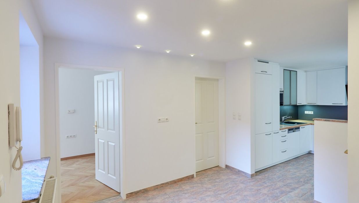 Der vormals vorhandene Schrankraum im mittleren Zimmer wurde im Zuge der Sanierung entfernt und schafft so mehr Offenheit – der aktualisierte Verkaufsplan wird noch angepasst.
