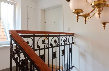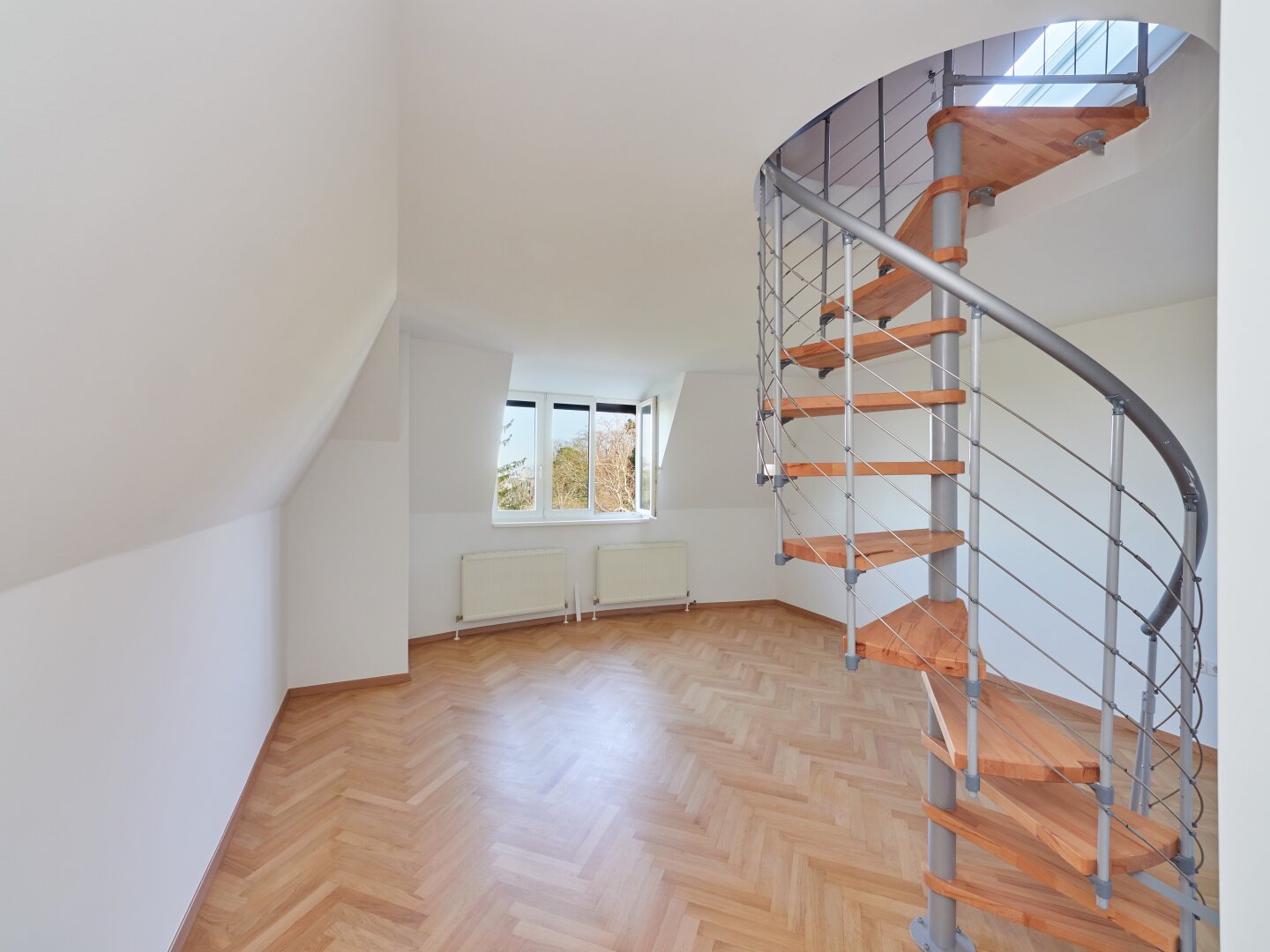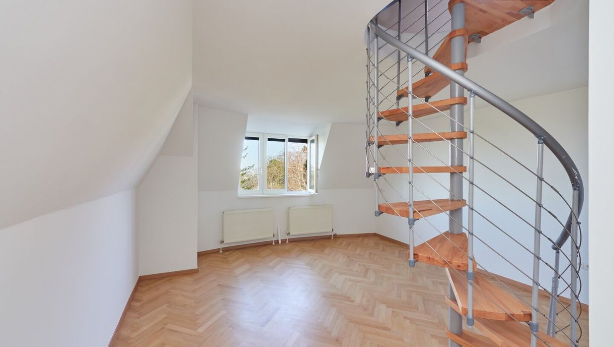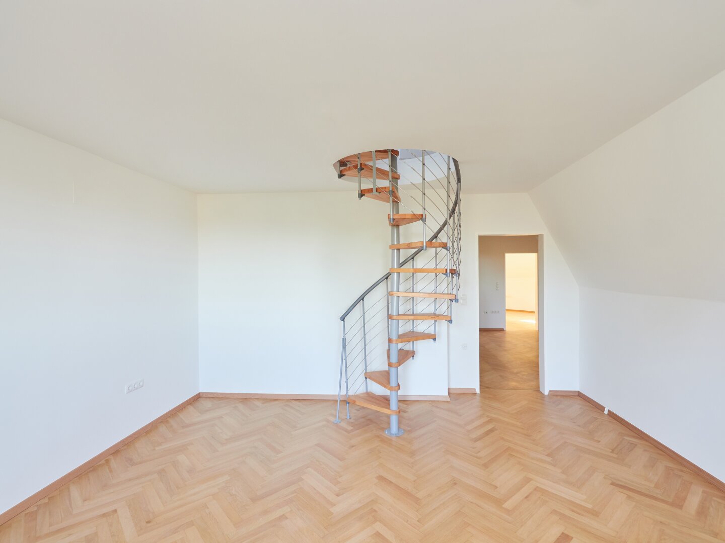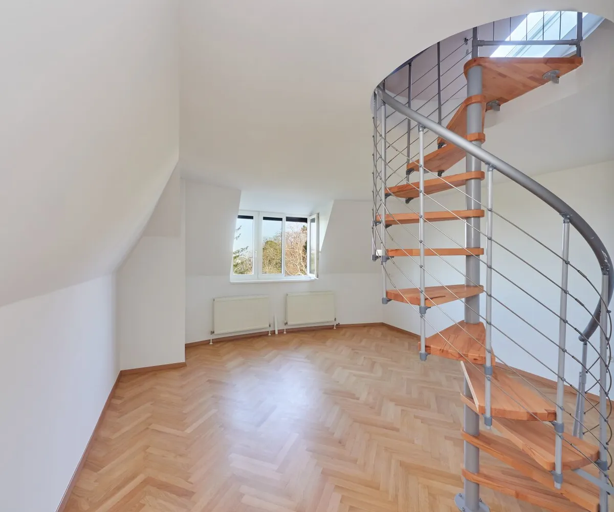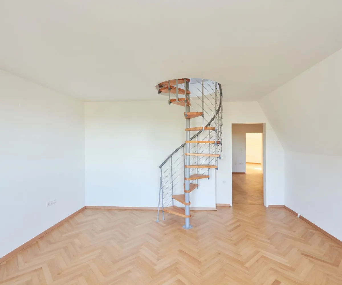• Großzügiges Wohnzimmer mit Wendeltreppe zum Dachboden