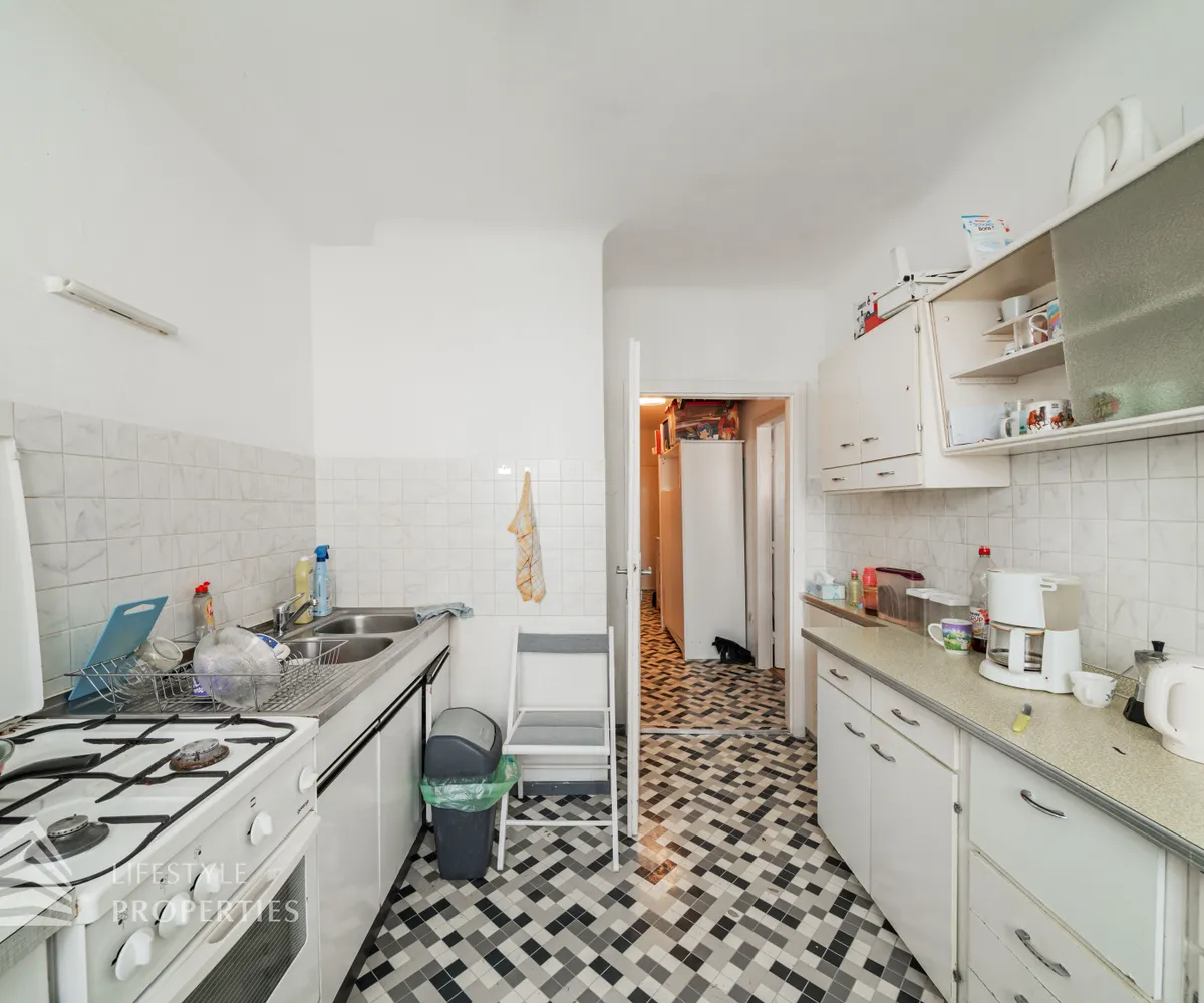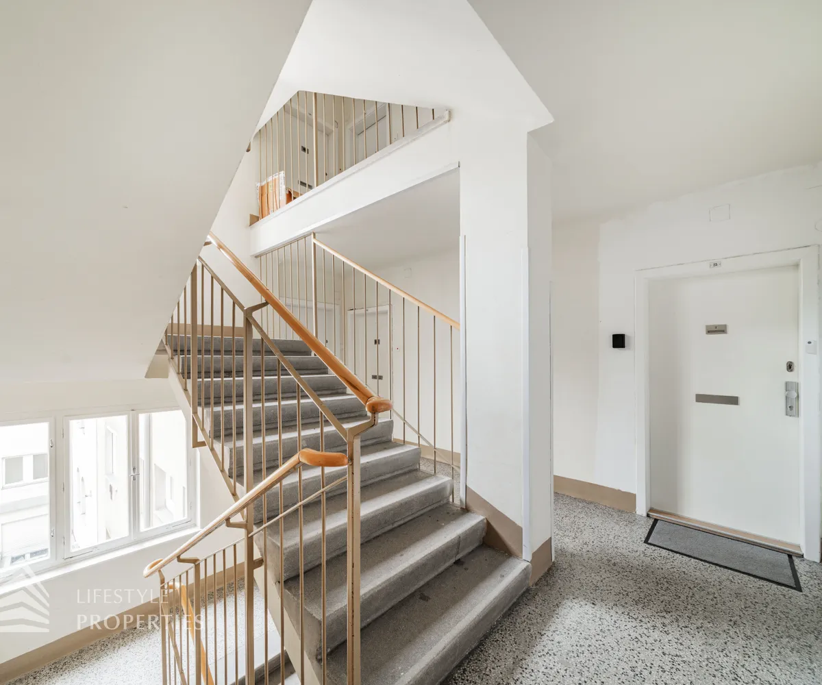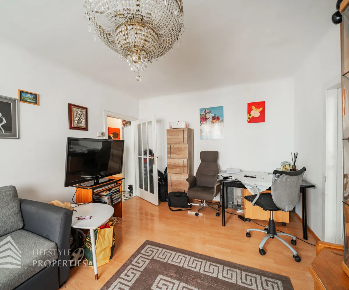 Die renovierungsbedürftige Wohnung befindet sich im 4. Obergeschoss (ohne Lift) eines im Jahre 1961 errichteten Neubaus. Sie erstreckt sich über eine Wohnfläche von ca. 55 m² und teilt sich auf in einen Vorraum, zwei Wohnräume, eine Küche, ein Badezimmer sowie ein separates WC.