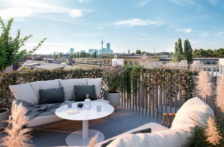 In nur 16 Minuten gelangt man öffentlich nach Wien Mitte ins Stadtzentrum. Die zahlreichen Freizeitmöglichkeiten entlang der Alten Donau und auf der Donauinsel erreicht man mit dem Fahrrad bequem in wenigen Minuten.