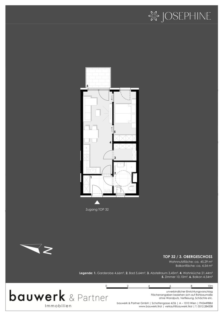In der Stoffellagasse 7 im 2. Bezirk, direkt am Wiener Prater, wird das Wohnprojekt JOSEPHINE vom renommierten Tiroler Bauträger bauwerk realisiert. Ein besonderes Merkmal dieses Projektes ist der unvergleichliche Blick auf den Prater und das Wiener Riesenrad. Insgesamt werden 60 hochwertige Wohnungen über 7 Etagen mit einzigartigem Grünblick errichtet. Das Angebot reicht von effizienten 2 Zimmerwohnungen bis zur luxuriösen Dachgeschosswohnung. Alle Wohneinheiten verfügen über private Freiflächen. Zudem stehen den Bewohnern ca. 30 Tiefgaragenstellplätze und Kellerabteile zur Verfügung. Das Projekt wurde zudem mit der klimaaktiv Bronze Zertifizierung ausgezeichnet.
