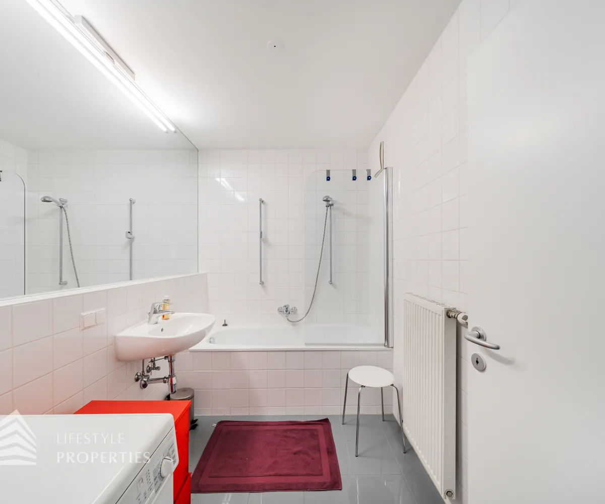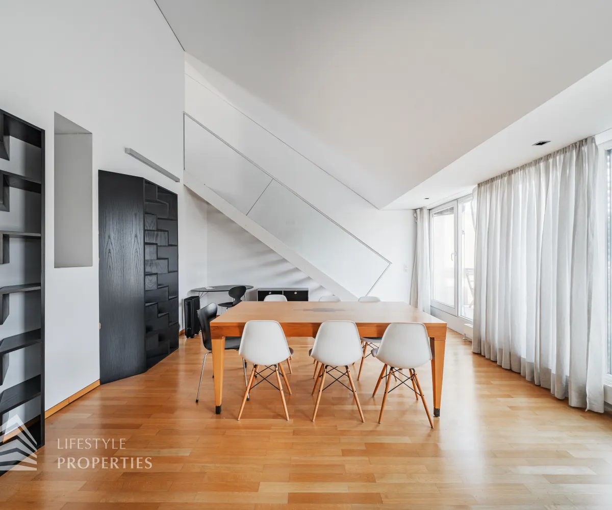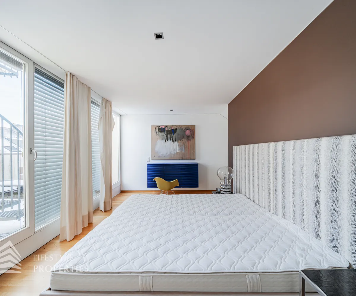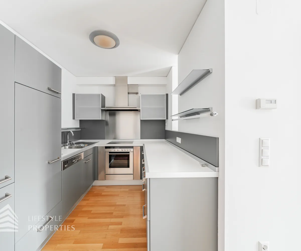 Bei Betreten der Wohnung gelangen Sie in den ca. 3 m² großen Vorraum. Links von Ihnen befindet sich das ca. 5 m² große, mit Badewanne, Waschtisch und Waschmaschinenanschluss ausgestattete, Badezimmer. Rechts von Ihnen befindet sich das WC. Der Vorraum führt Sie gerade hindurch in die moderne Küche, welche geschickt vom Wohnraum abgetrennt ist, aber dennoch dank einem gut geplanten Wanddurchbruch wie eine offen gestaltete Wohnküche wirkt. Vis-à-vis der Küche ist eine große Nische, welche Platz für einen riesigen Einbauschrank und genug Stauraum bietet. Den lichtdurchfluteten Wohnraum erreichen Sie, wenn Sie vom Vorraum gerade an der Küche vorbeigehen. Auf einer Fläche von ca. 44 m² haben Sie genügend Platz für einen großen Esstisch und eine gemütliche Sofalandschaft. Der Raum wird von einer Fensterfront ganztägig mit viel Licht durchflutet. Hinter der Glasfront verbirgt sich eine der Terrassen. Sie können diese über den Wohnraum betreten. Auf der ca. 12 m² großen Terrasse, welche sich über die gesamte Wohnlänge erstreckt, haben Sie ausreichend Platz für einen gemütlichen Frühstückstisch und weitere Möbel um die frische Luft genießen zu können. Zurück im Wohnraum, über die Treppe gelangen Sie in das nächste Geschoss. Die Treppe führt Sie direkt in das ca. 17 m² große Schlafzimmer. Das zugehörige Badezimmer, welches mit einer Dusche, einem Waschbecken und einer Toilette ausgestattet ist, kann direkt vom Schlafzimmer aus betreten werden. Im Schlafzimmer können Sie einen kleinen Arbeitsbereich mit einem Schreibtisch und einen Schlafbereich mit einem großes Bett schaffen. Die Fensterfront, welches den kompletten Raum mit viel natürlichem Licht durchflutet sorgt für eine angenehme Wohlfühlatmosphäre. Von dem Schlafzimmer können Sie die ruhige Richtung Innenhof gelegene ca. 14 m² große Terrasse sowie das absolute Highlight der Wohnung betreten. Eine Wendeltreppe führt Sie von der Terrasse auf die ca. 12 m² große Dachterrasse, welche Ihnen einen 360° Stadtblick über die Dächer Wiens bietet. Hier können Sie Ihre Wohlfühloase mitten in Wien errichten.