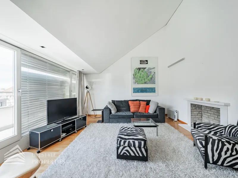 Die Wohnung befindet sich im 1. und 2. Dachgeschoss eines um das Jahr 2002 durchgeführten Dachausbaus. Sie kann entspannt über einen Personenaufzug erreicht werden. Die Wohnfläche von ca. 85 m² teilt sich auf in ein Schlafzimmer, ein Wohnzimmer, eine Küche, einen Vorraum, ein Badezimmer mit WC und ein weiteres Badezimmer, sowie ein Gäste-WC. Zusätzlich dazu bietet die Wohnung zwei große Terrassen und als absolutes Highlight eine unglaubliche Dachterrasse. Die Haupträume sind mit hochwertigem Parkett ausgekleidet, in den Nassräumen wurden Fliesen verlegt. Beheizt wird die Wohnung mittels Gasetagenheizung. Gegen einen Aufpreis können Sie das Mobiliar mit erwerben. Der Rücklagenstand beläuft sich per 15.07.2021 auf rund € 57.000,--.