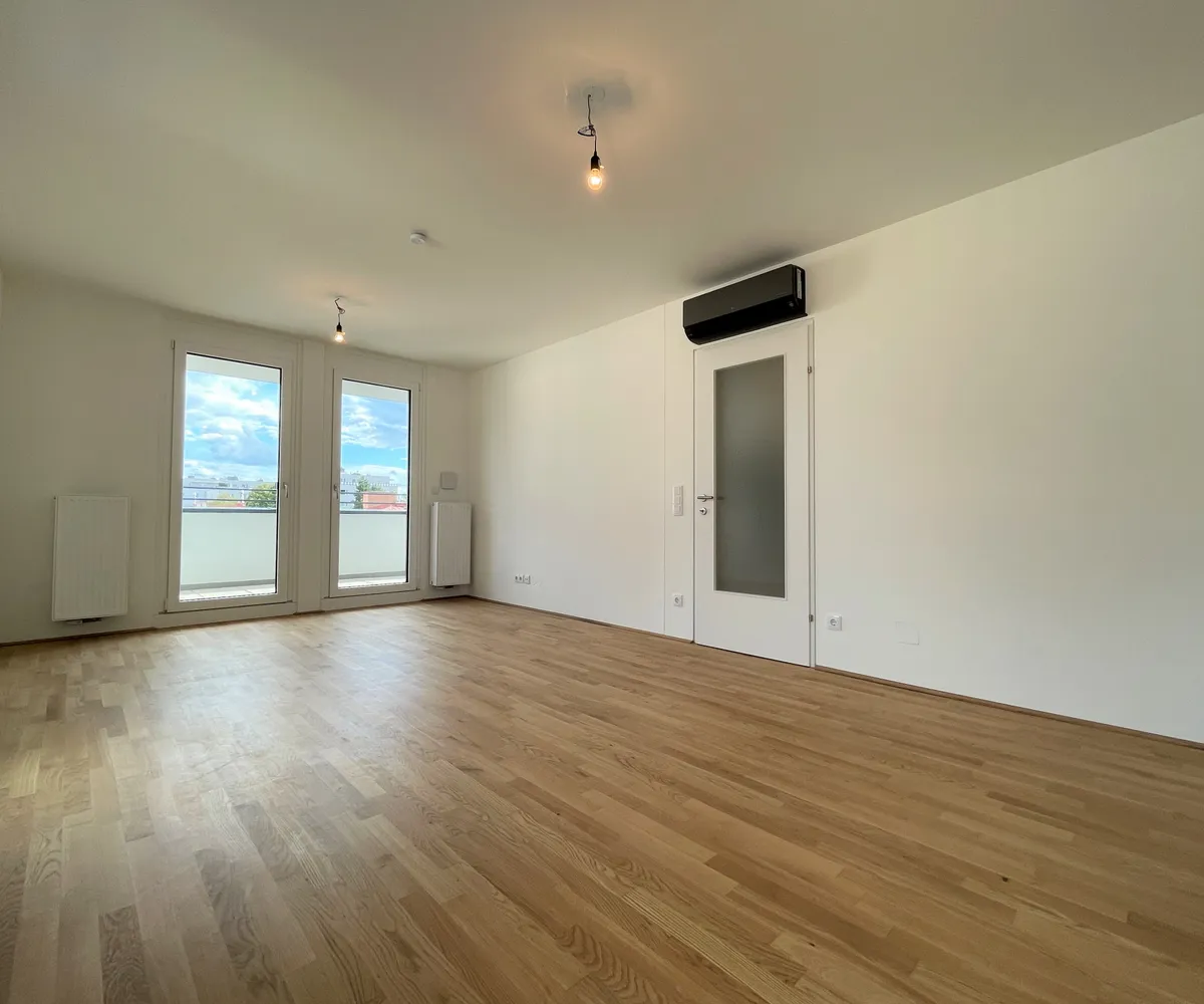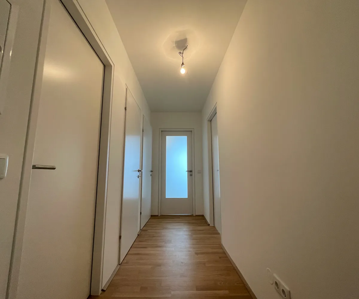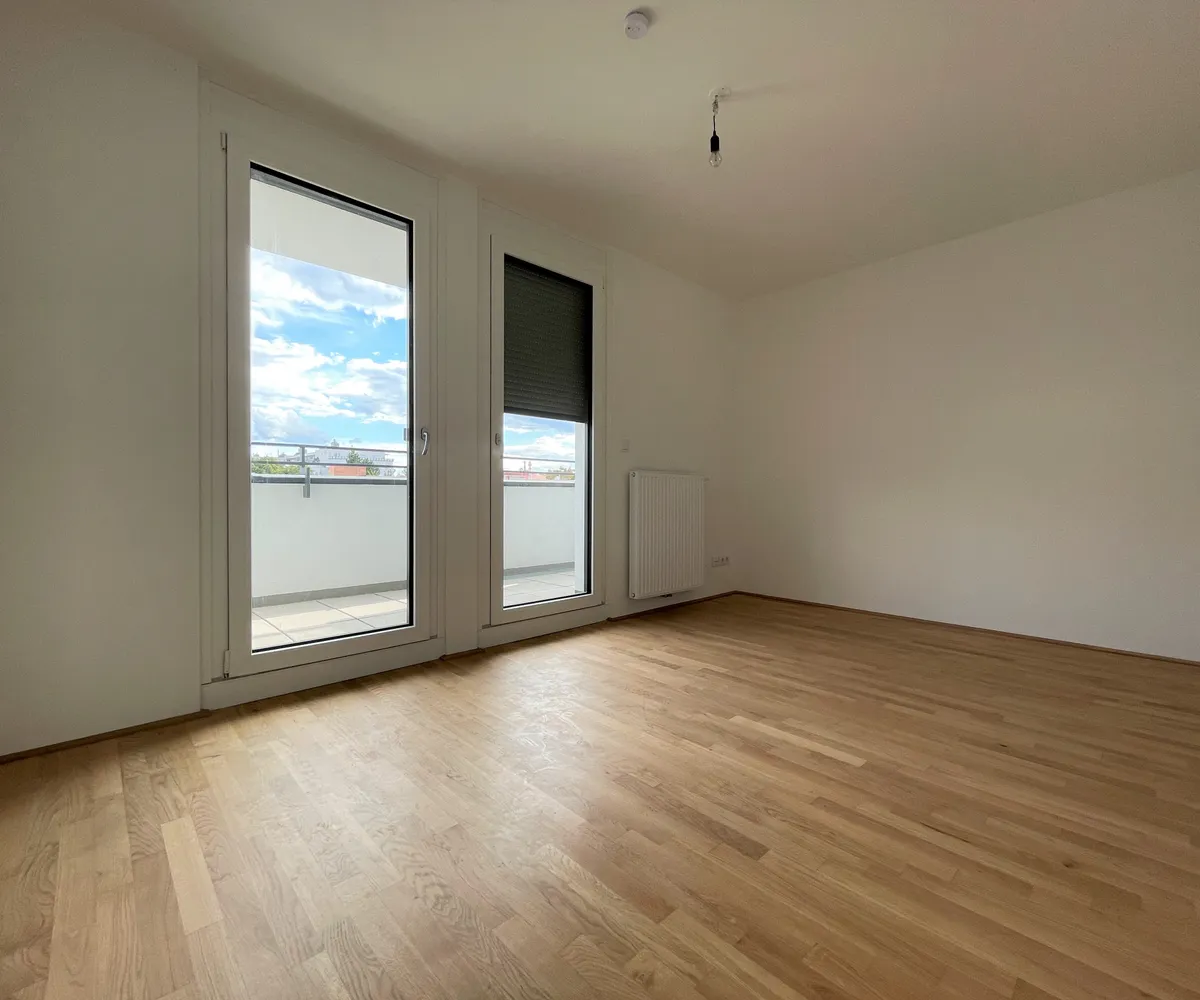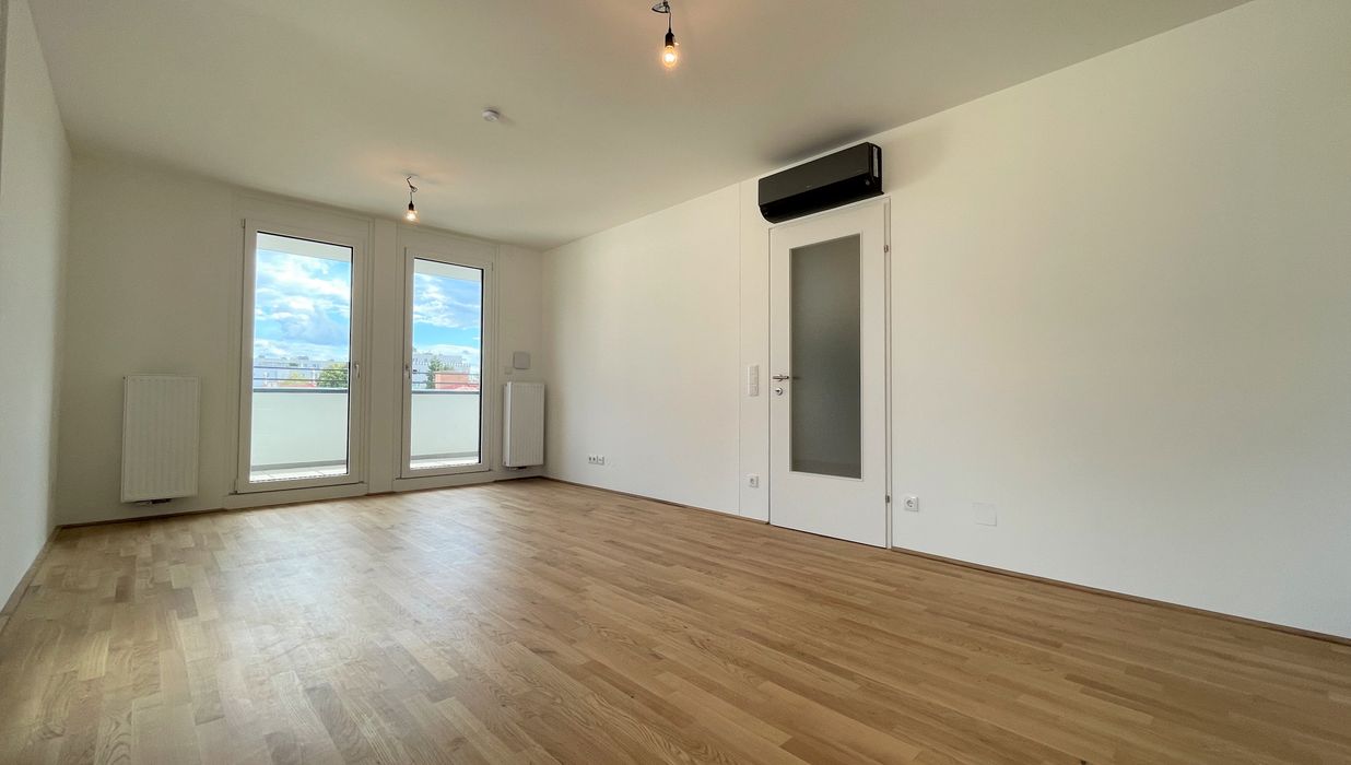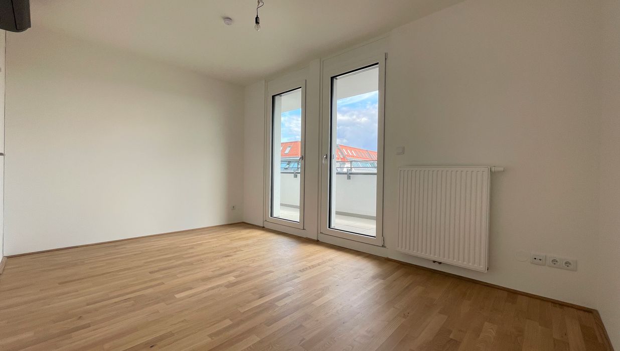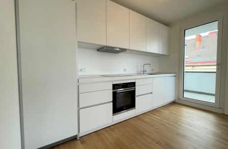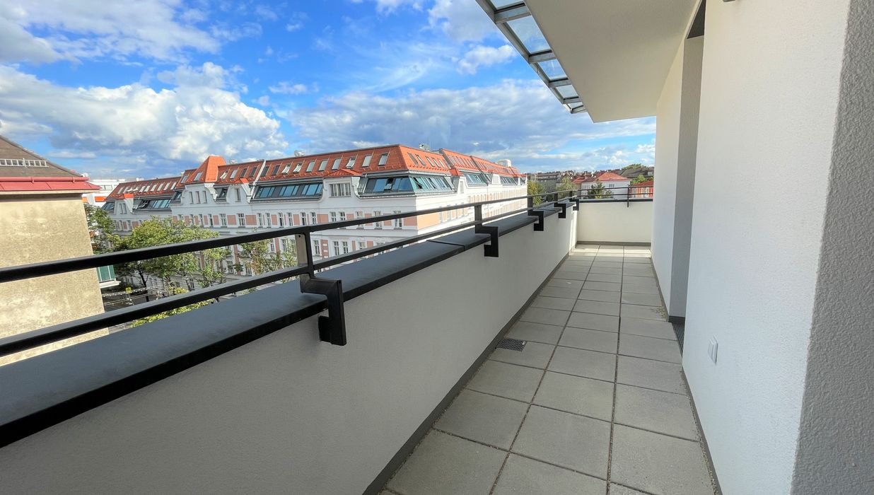 Die Wohnung befindet sich im ersten Dachgeschoss des 2022 fertiggestellten Neubauprojekts und ist durch die Ecklage und die Ausrichtung nach Osten wie auch Süden lichtdurchflutet und bietet insgesamt sechs Zugänge zur 21m² großen Terrasse. Gegliedert ist die klimatisierbare Wohnung in einen zentralen Vorraum von dem aus sowohl das Badezimmer mit Badewanne, das separate WC, der Abstellraum mit Waschmaschinenanschluss sowie das Schlafzimmer und die gut aufgeteilte Wohnküche zugänglich sind.