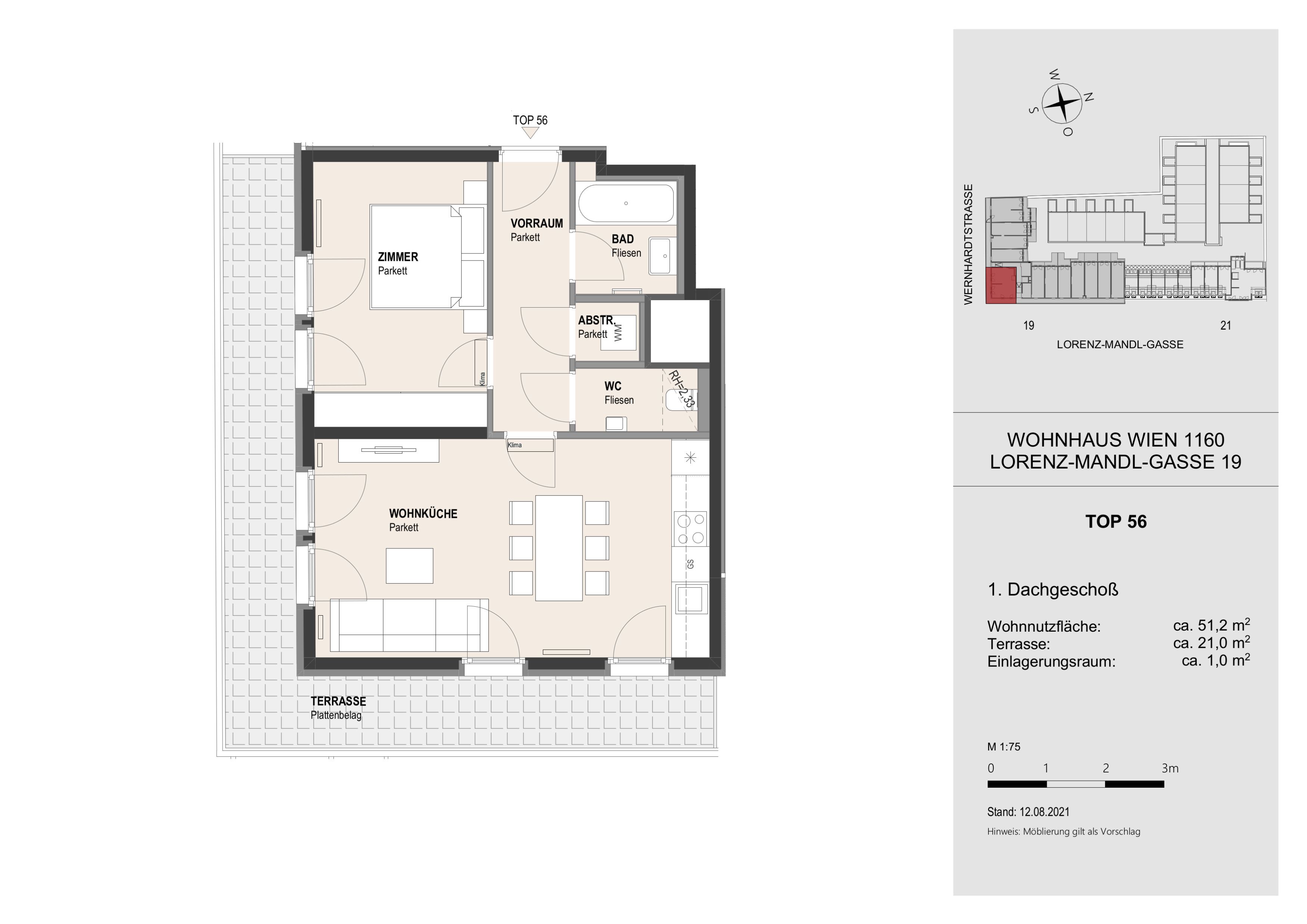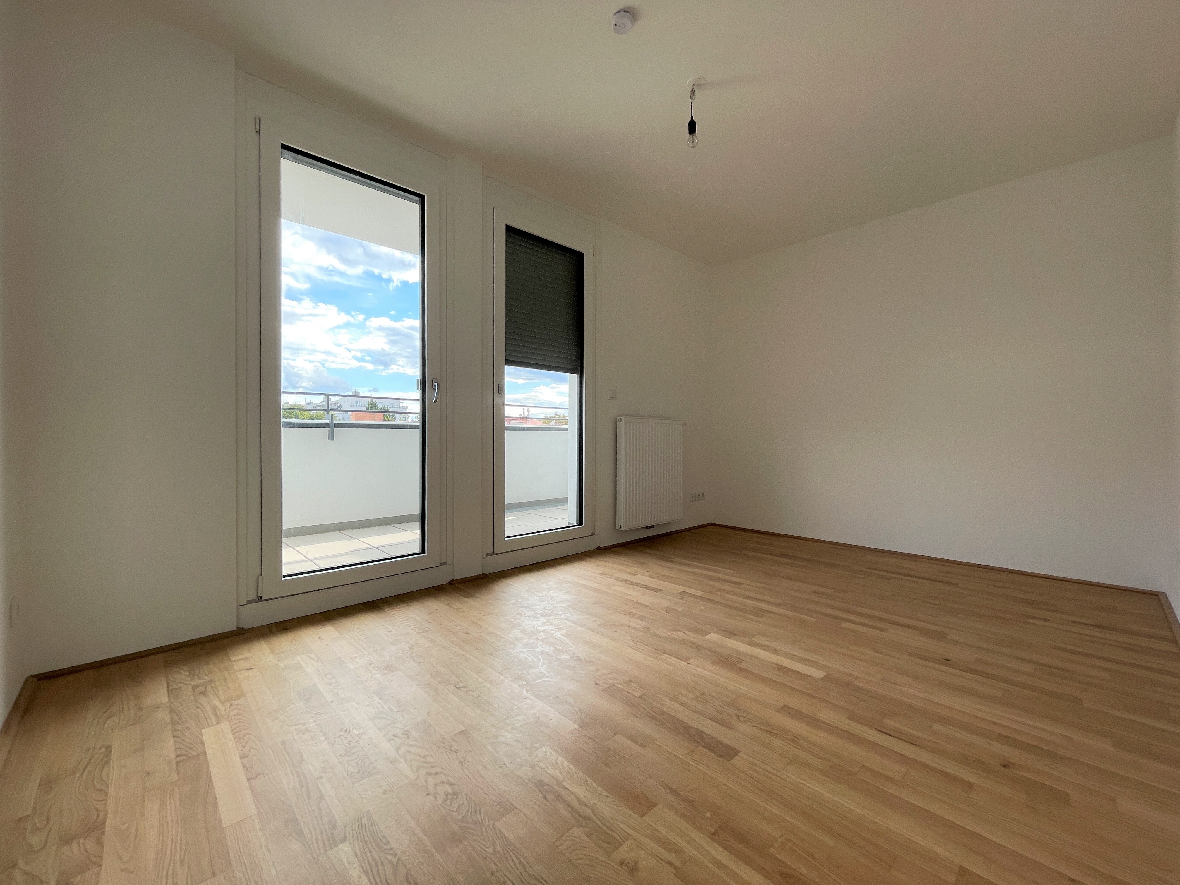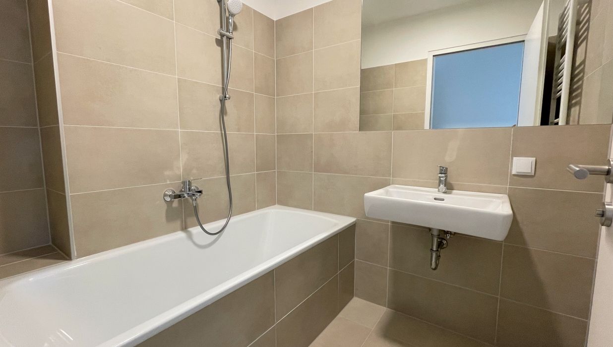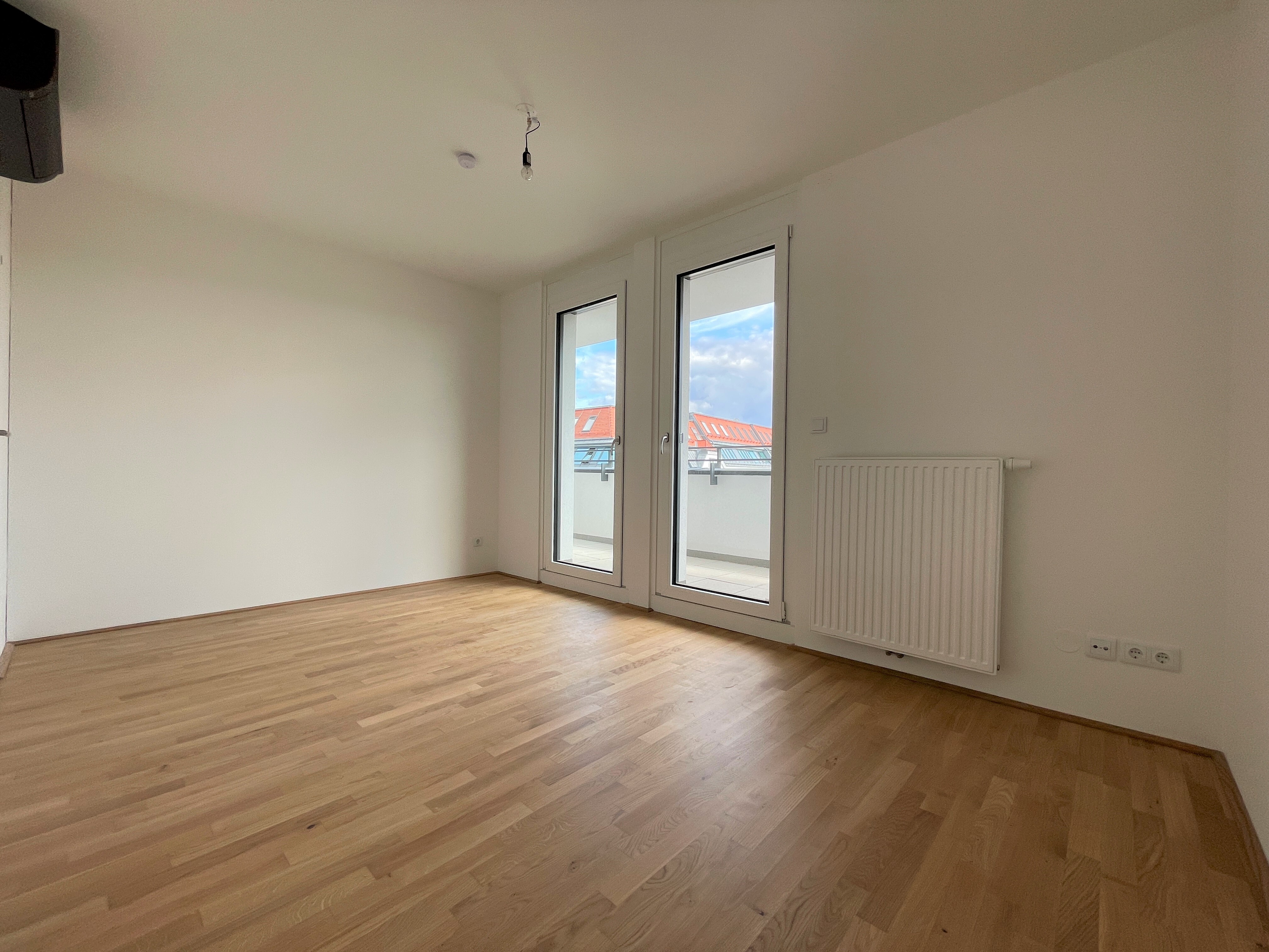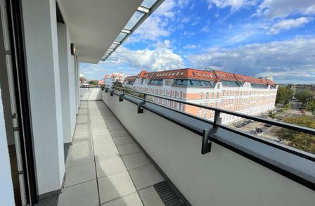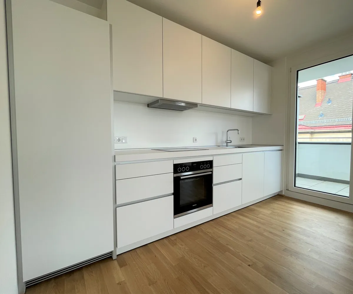 Die Wohnung befindet sich im ersten Dachgeschoss des 2022 fertiggestellten Neubauprojekts und ist durch die Ecklage und die Ausrichtung nach Osten wie auch Süden lichtdurchflutet und bietet insgesamt sechs Zugänge zur 21m² großen Terrasse. Gegliedert ist die klimatisierbare Wohnung in einen zentralen Vorraum von dem aus sowohl das Badezimmer mit Badewanne, das separate WC, der Abstellraum mit Waschmaschinenanschluss sowie das Schlafzimmer und die gut aufgeteilte Wohnküche zugänglich sind.