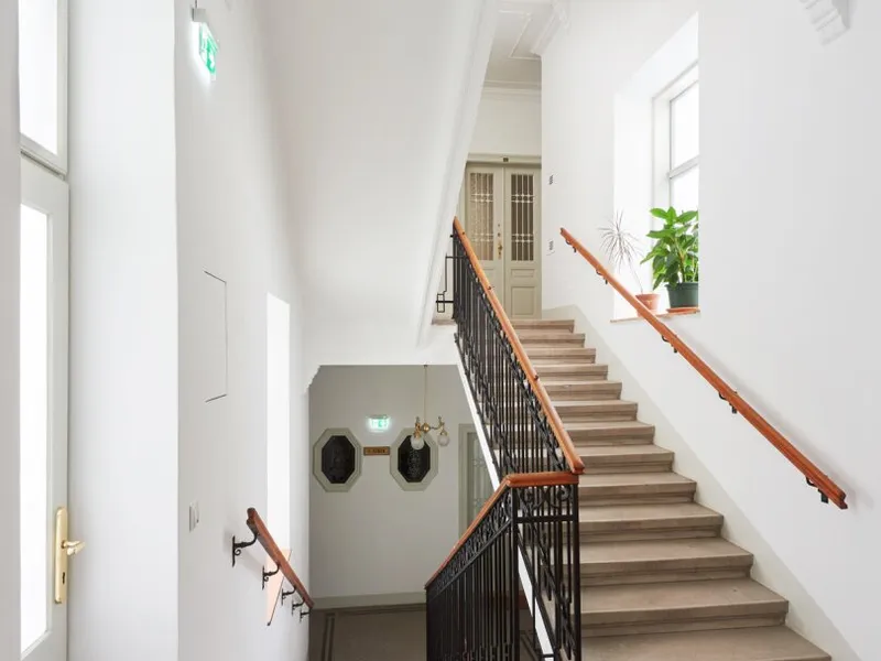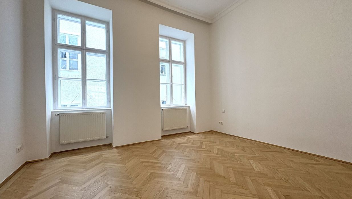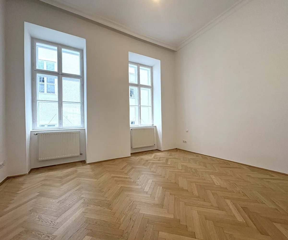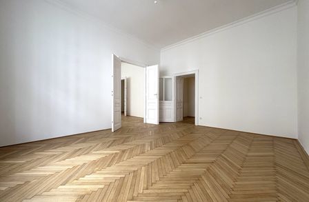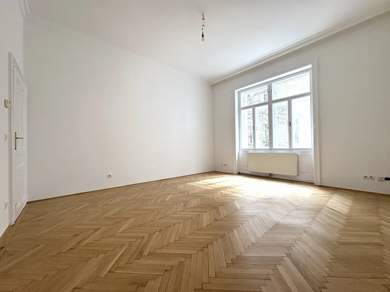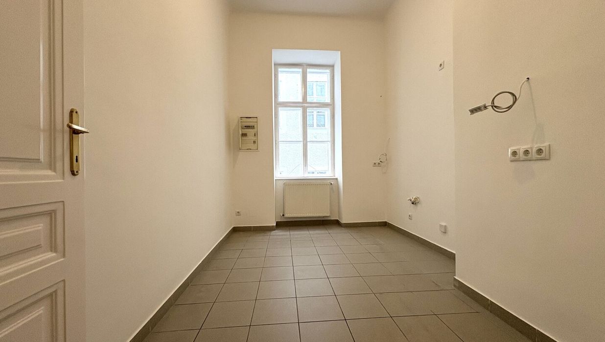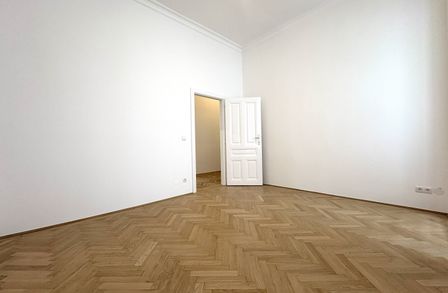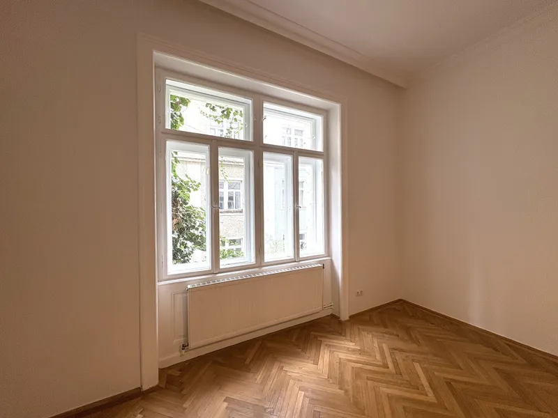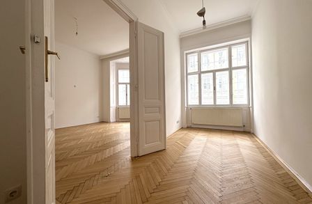 Die Wohnung liegt im Mezzanin, leicht erhöht und damit abgeschirmt vom direkten Straßenleben. Die Kombination aus Straßen- und Innenhofausrichtung sorgt für Helligkeit und Ruhe zugleich. Der klassische Grundriss bietet eine hervorragende Basis für individuelle Gestaltung – ob zeitlos elegant oder modern interpretiert.