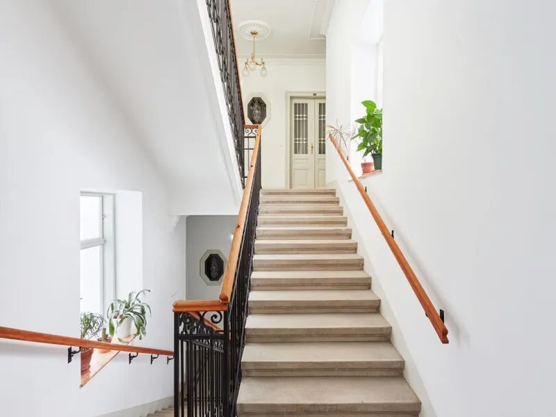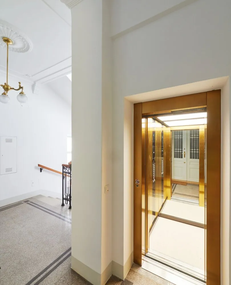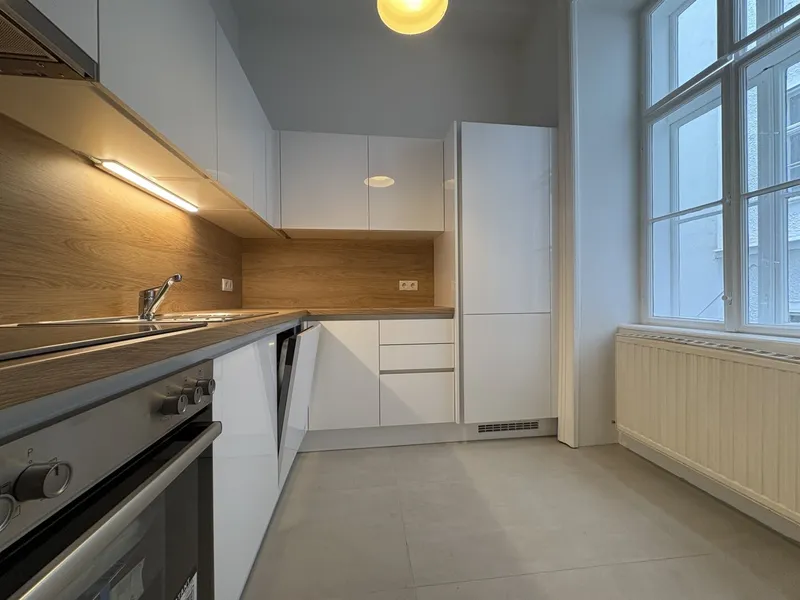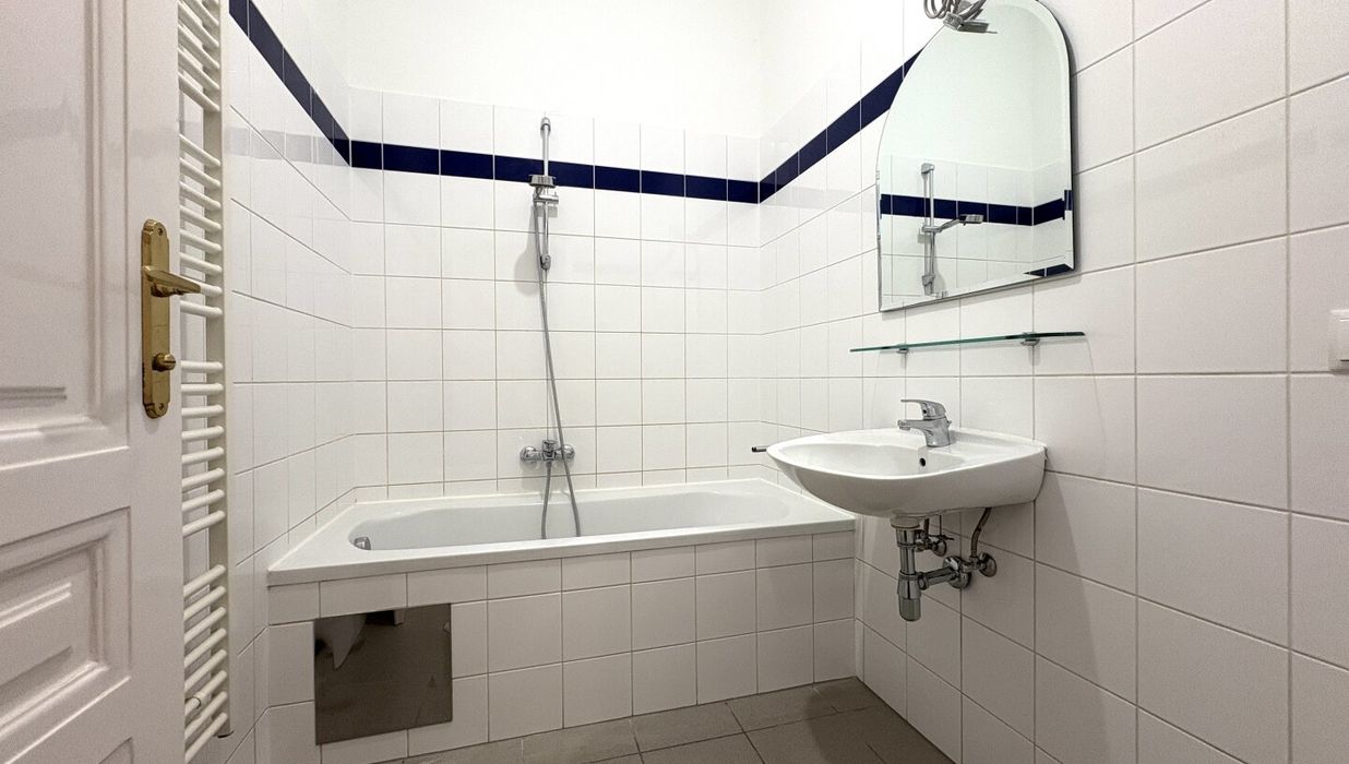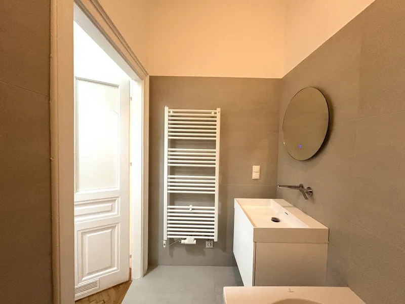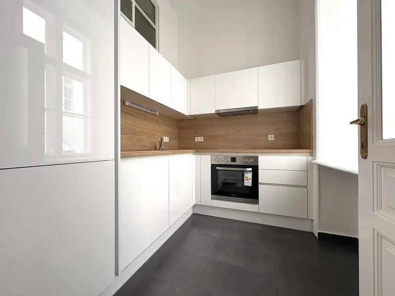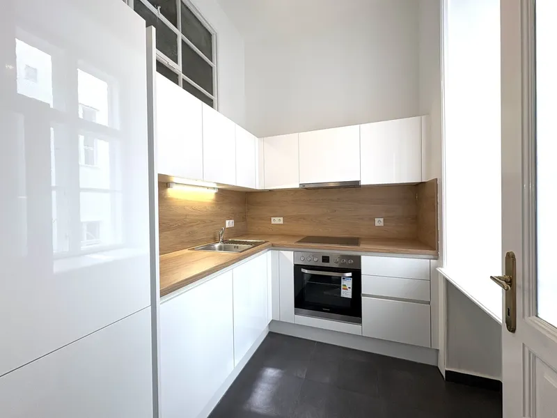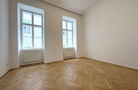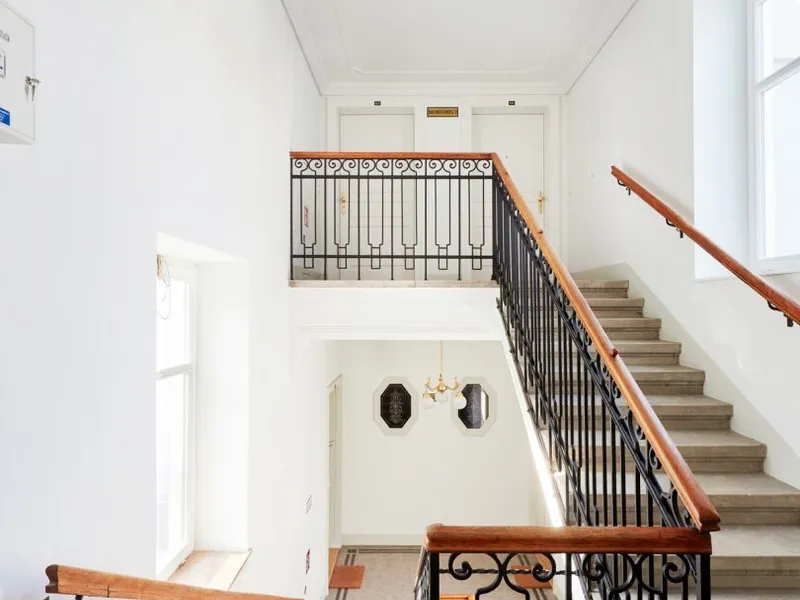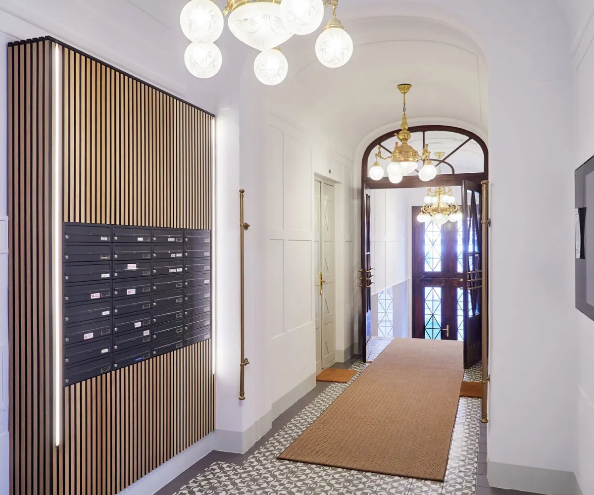 Die Wohnung liegt im Mezzanin, leicht erhöht und damit abgeschirmt vom direkten Straßenleben. Die Kombination aus Straßen- und Innenhofausrichtung sorgt für Helligkeit und Ruhe zugleich. Der klassische Grundriss bietet eine hervorragende Basis für individuelle Gestaltung – ob zeitlos elegant oder modern interpretiert.