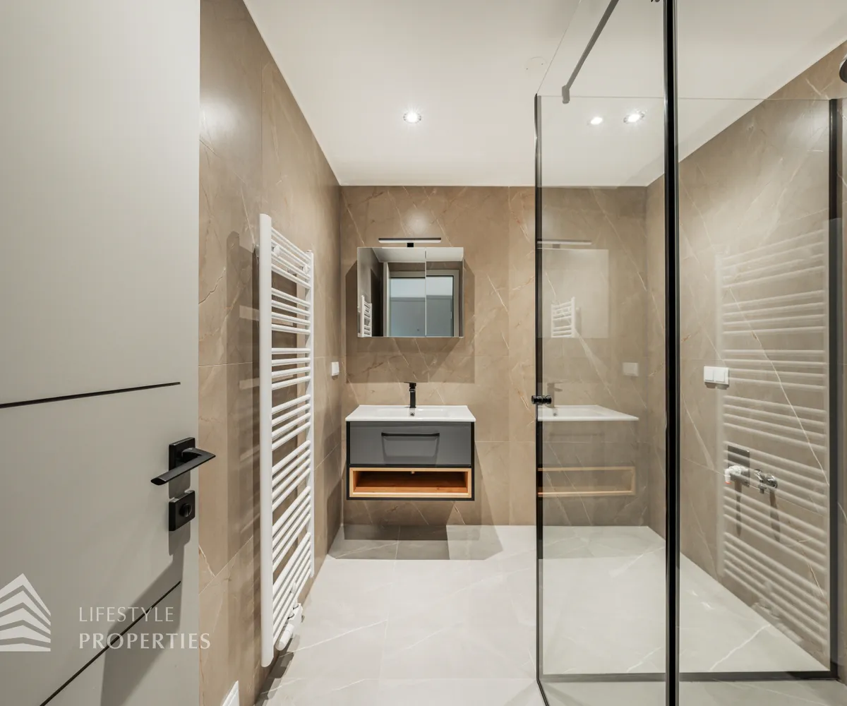 Der Vorraum führt Sie zu einem modernen Badezimmer mit Walk in Dusche und zu einem separaten WC. Diese Wohnung ist ideal für Singles, die modernen Komfort und ein durchdachtes Raumlayout schätzen, aber sie eignet sich auch hervorragend für Paare, die Wert auf ein gemütliches Zuhause legen.