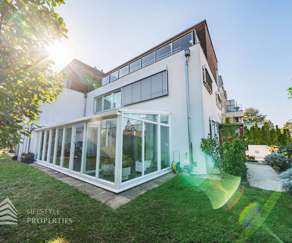 Zum Verkauf gelangt eine atemberaubende Villa mit Blick über Wien und Weingärten im 19. Wiener Gemeindebezirk bei Neustift im Walde.