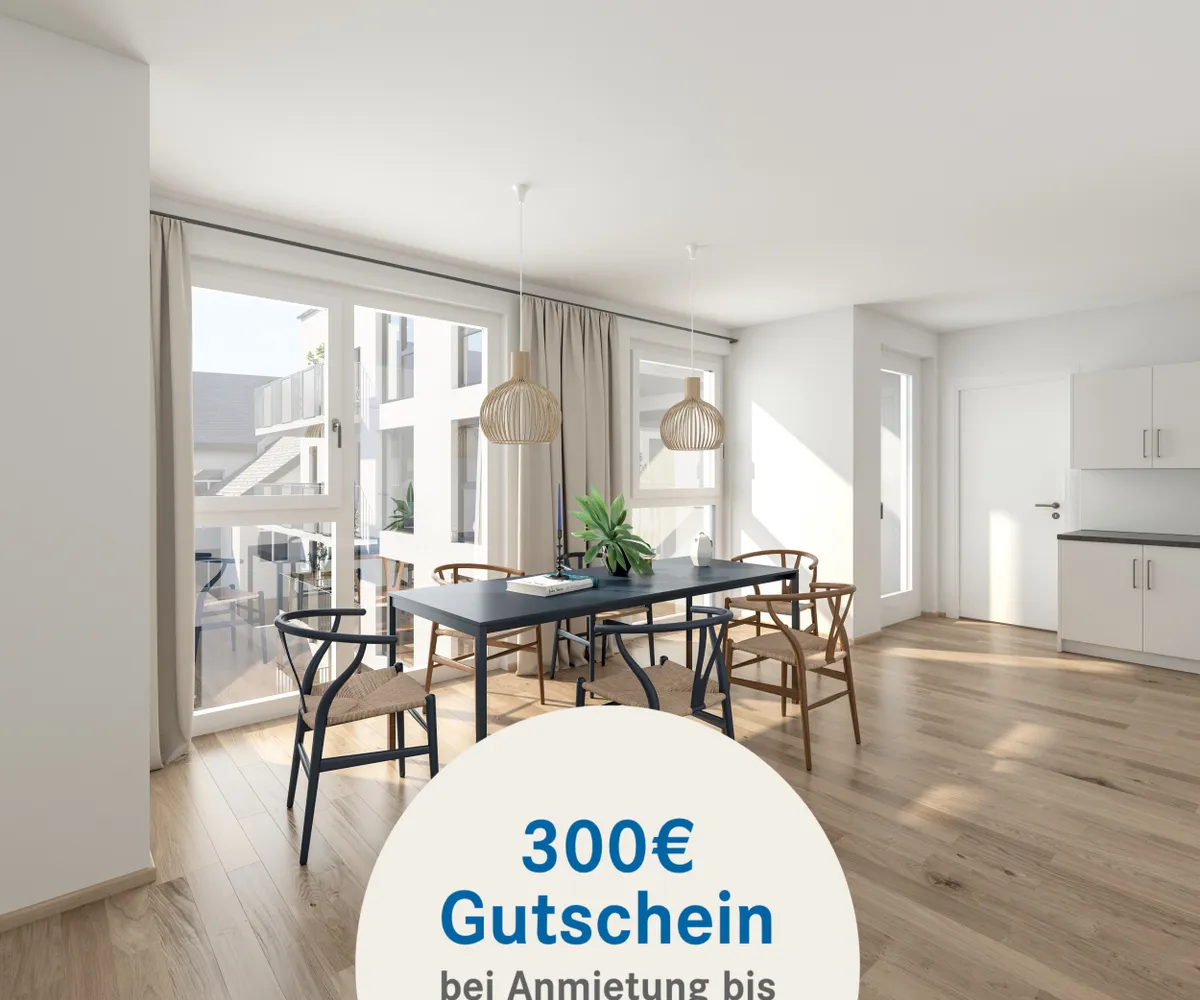 Der 300 € INTERSPAR-Gutschein wird bei Abschluss eines Mietvertrags mit Mietbeginn zum 01.07.2026 gewährt.