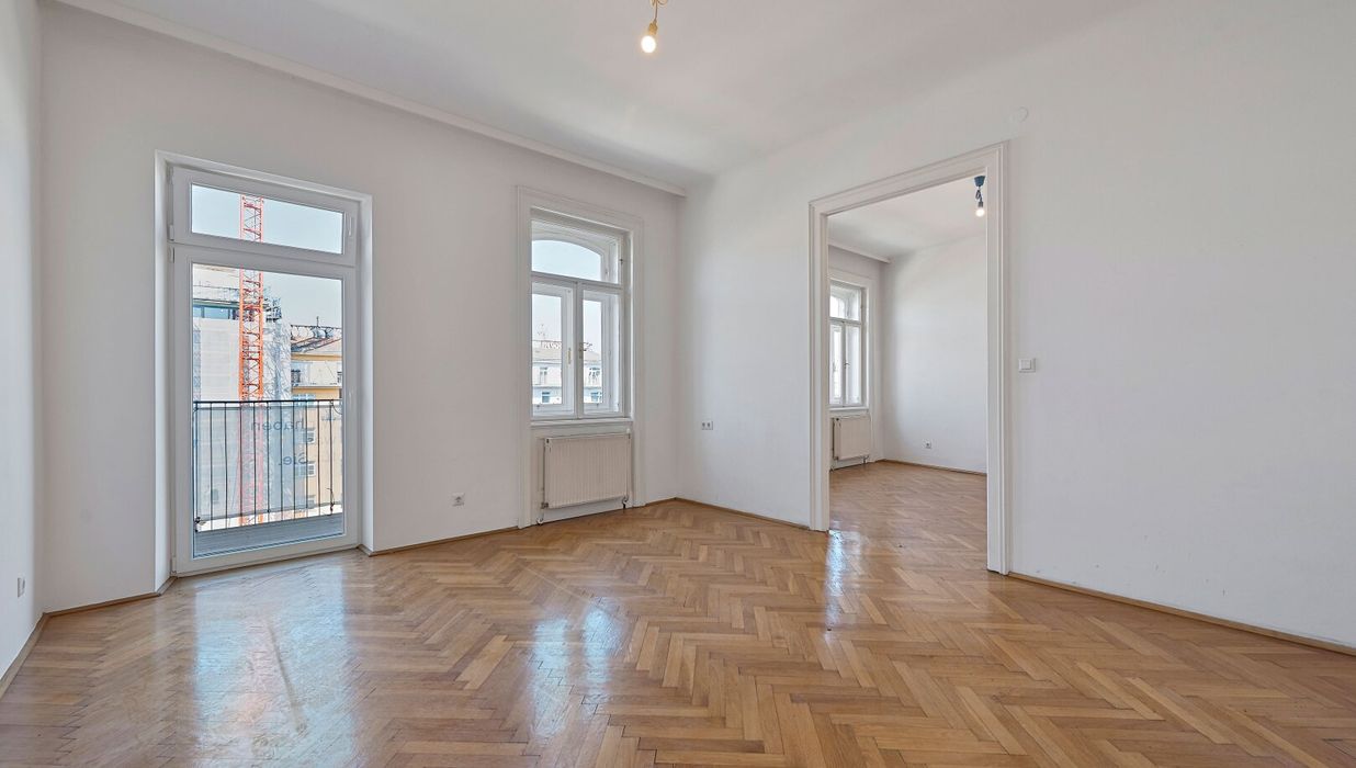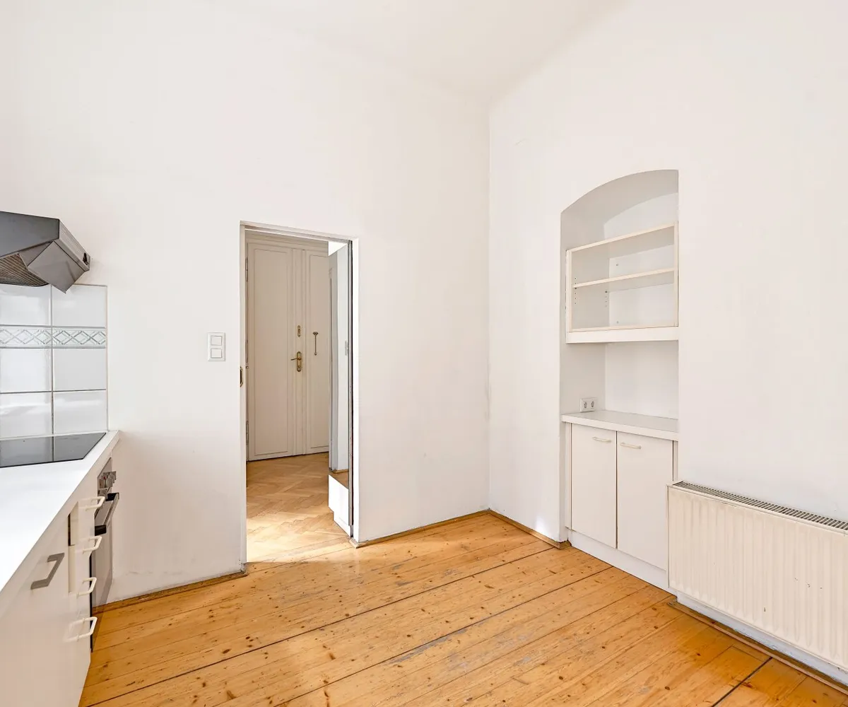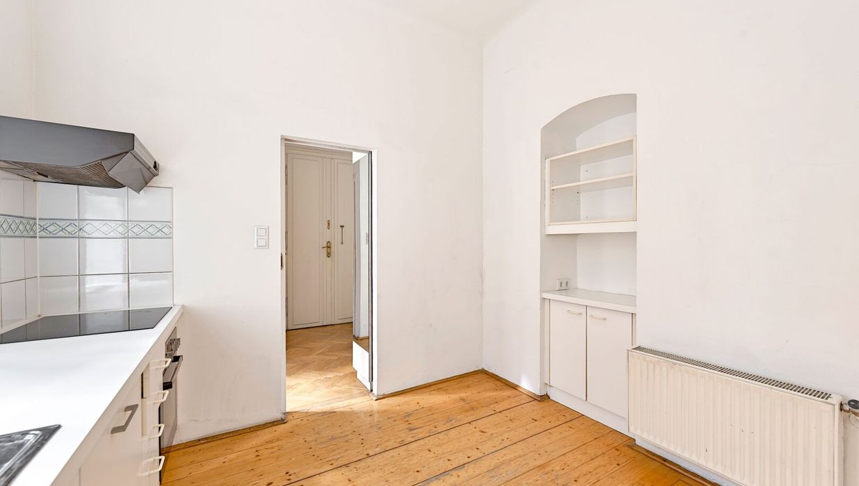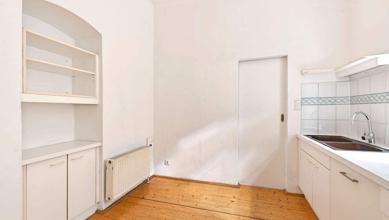Im hohen 4. Liftstock (Lift im Halbstock) biete diese Wohnung neben einem großzügigen Wohnzimmer und einem Schlafzimmer auch eine Küche, Bad, Vorraum sowie ein separates WC Parkettboden, Kastenfenster, kurzum, alles, was das Altbauherz begehrt!