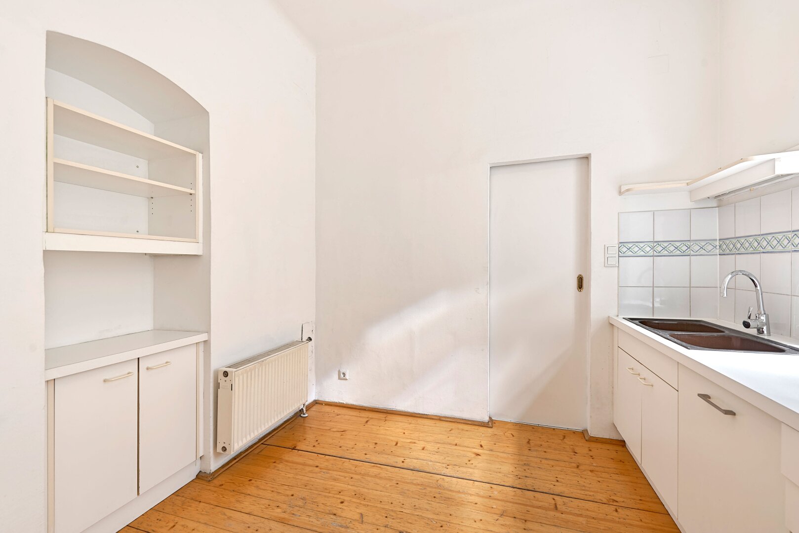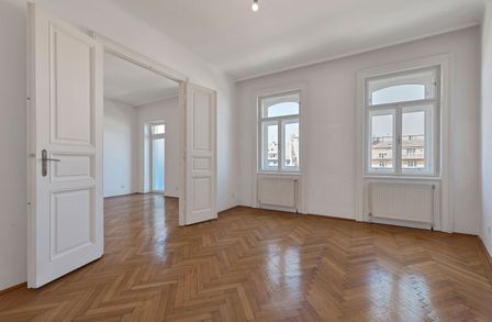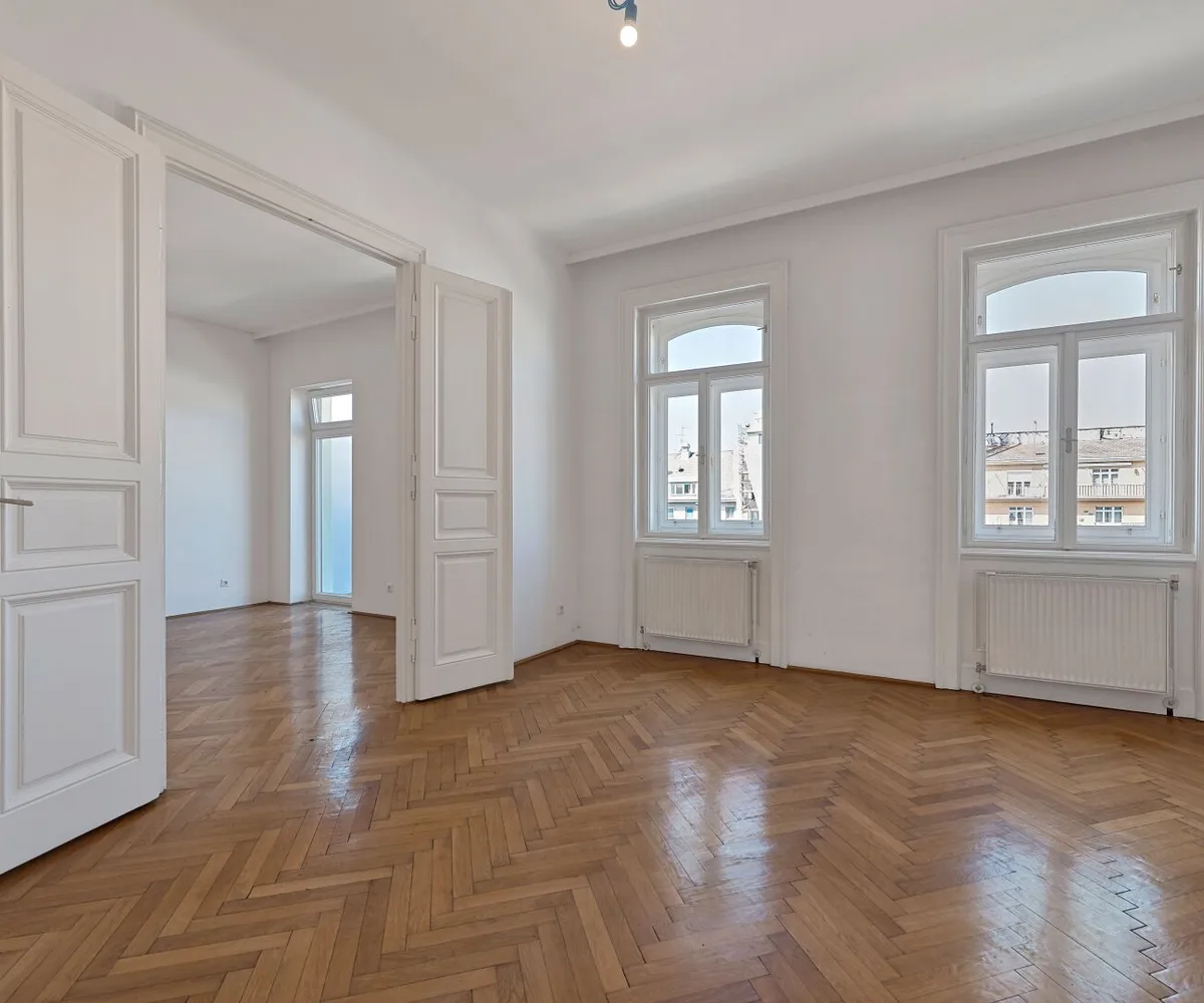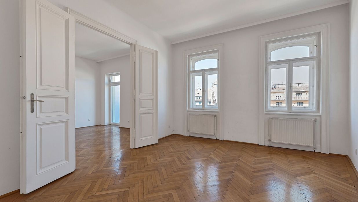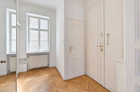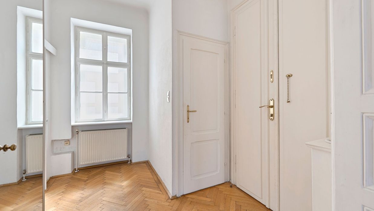 Im hohen 4. Liftstock (Lift im Halbstock) biete diese Wohnung neben einem großzügigen Wohnzimmer und einem Schlafzimmer auch eine Küche, Bad, Vorraum sowie ein separates WC Parkettboden, Kastenfenster, kurzum, alles, was das Altbauherz begehrt!