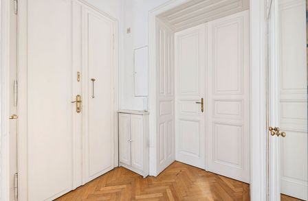 Das Gebäude besticht durch ein wunderschönes Entree und eine stuckreiche Fassade.