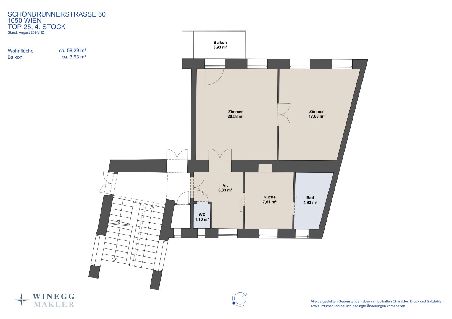 Der guten Ordnung halber halten wir fest, dass, sofern im Angebot nicht anders vermerkt, bei erfolgreichem Abschlussfall eine Provision anfällt, die den in der Immobilienmaklerverordnung BGBI. 262 und 297/1996 festgelegten Sätzen entspricht – das sind 3 % des Kaufpreises zzgl. 20 % USt. Diese Provisionspflicht besteht auch dann, wenn Sie die Ihnen überlassenen Informationen an Dritte weitergeben. Es besteht ein wirtschaftliches Naheverhältnis zum Verkäufer. Mit der Wohnungseigentumsbegründung, Kaufvertragserrichtung, treuhändigen Abwicklung und grundbücherlichen Durchführung ist die Rechtsanwaltskanzlei fsm law, Mag. Benedikt Stockert in 1080 Wien beauftragt.