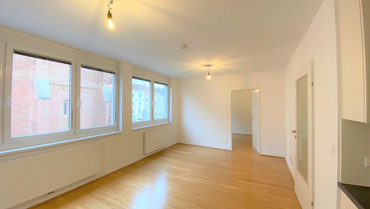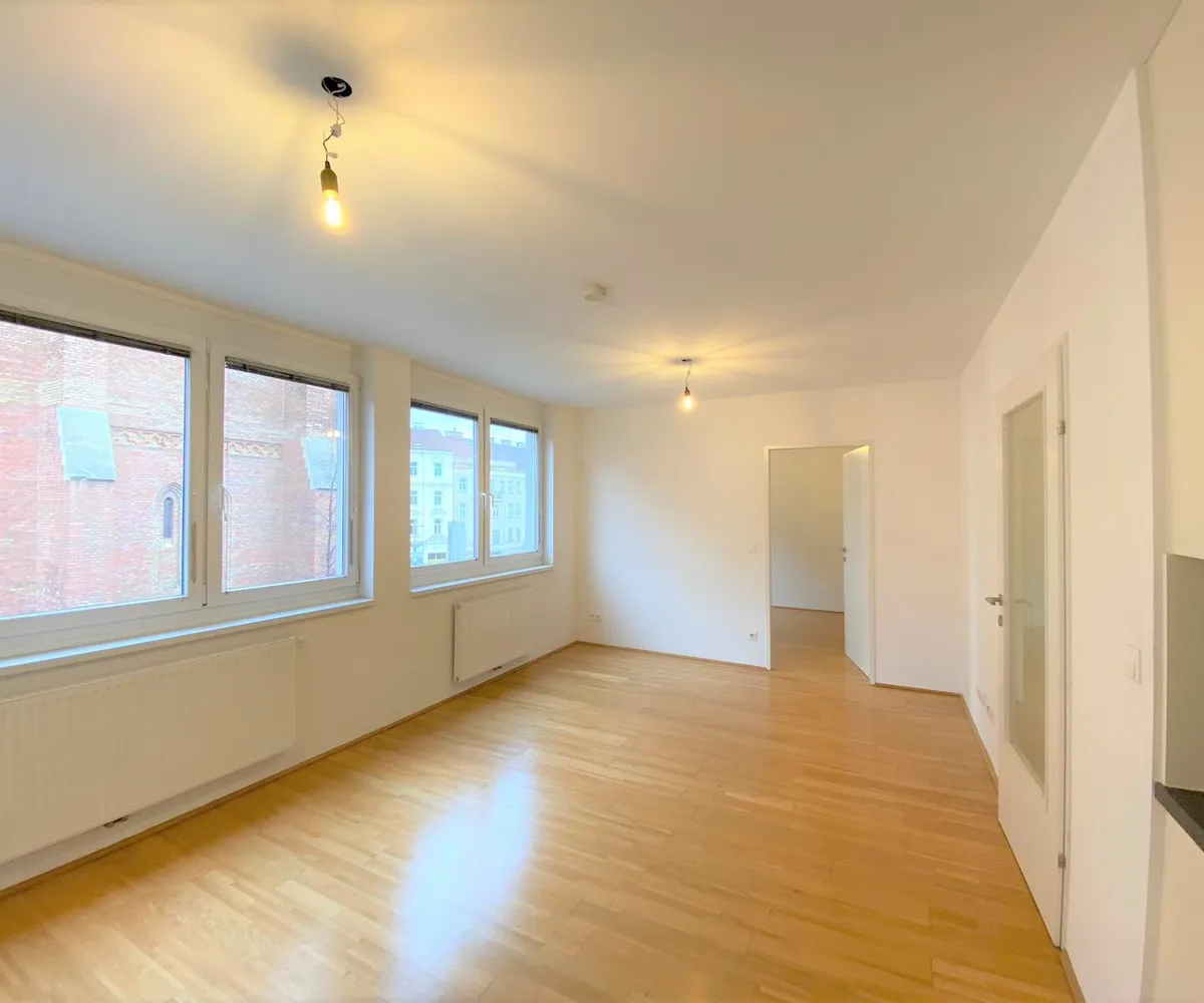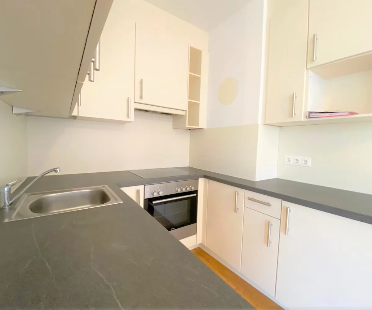 Diese Wohnung befindet sich im 4. Liftstock und verfügt über eine großzügige Wohnküche, ein Schlafzimmer, ein Badezimmer mit Wanne und Waschmaschinenanschluss, ein separates WC und ein Vorzimmer.