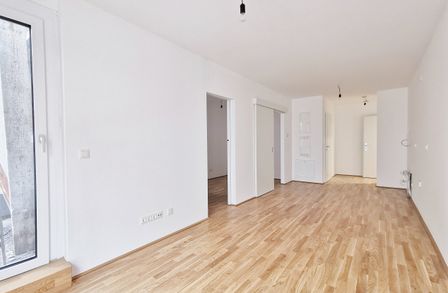 Diese durchdacht geschnittene 2-Zimmerwohnung befindet sich in einem kleinen Wohnhaus, welches vor wenigen Jahren errichtet wurde, nahe dem Hirschstettner Badeteich in der Süßenbrunner Straße.