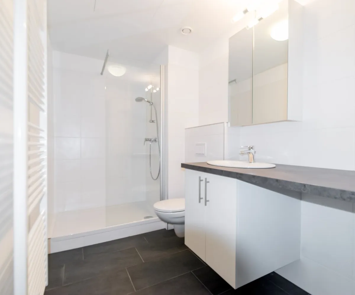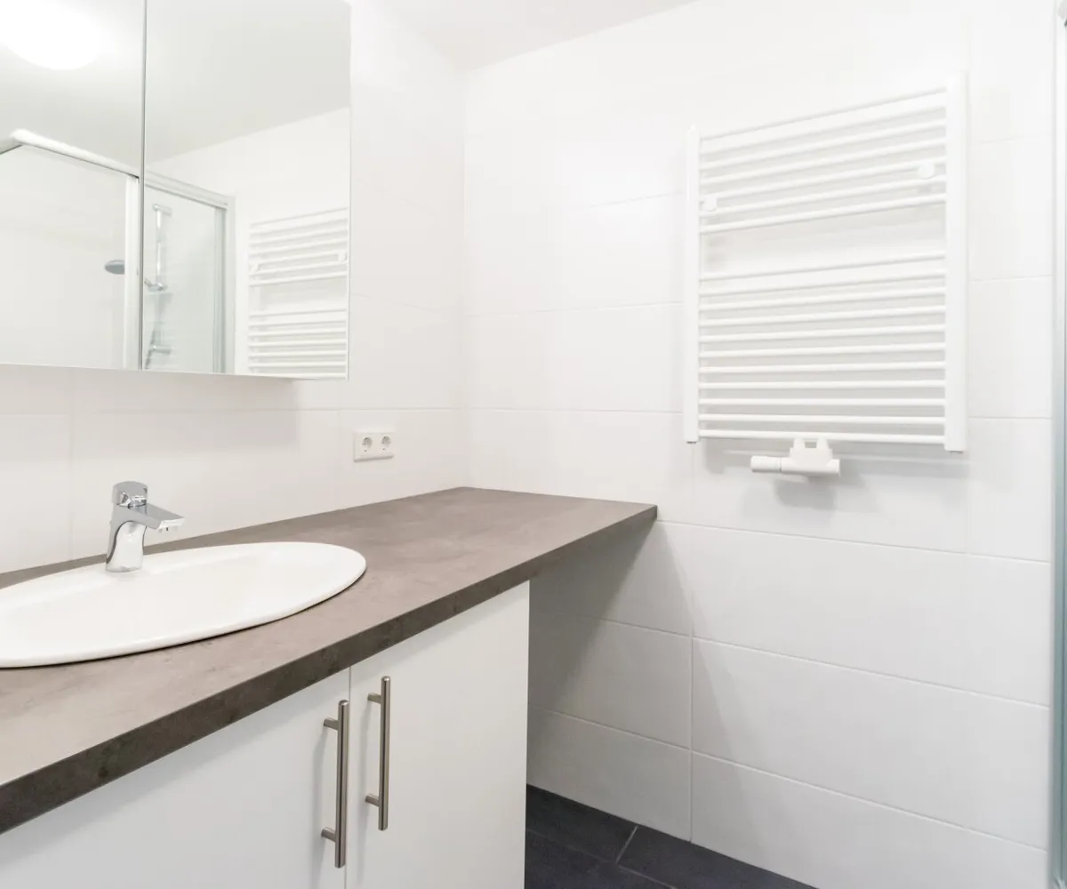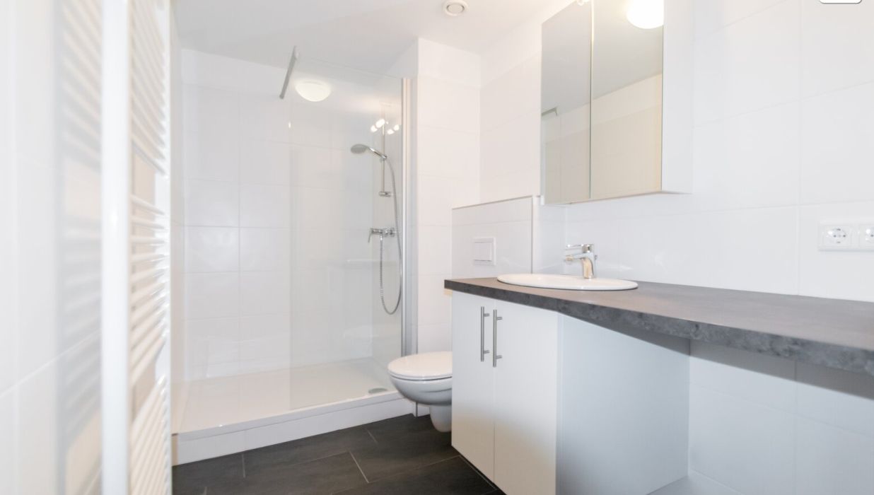 - gefliestes Bad mit Dusche, WC, Waschmaschinenanschluss