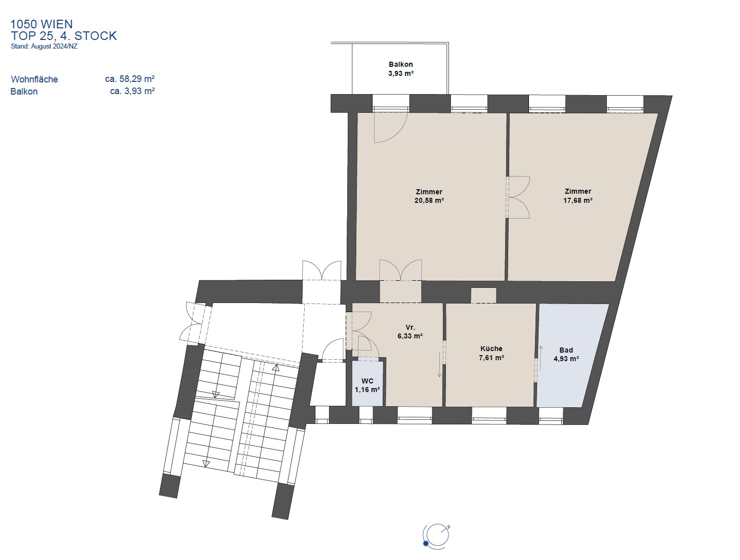 Die Liegenschaft befindet sich im 4. Stock eines im Jahre 1910 erbauten Altbaus und erstreckt sich über eine Wohnfläche von ca. 58 m². Die Wohnung teilt sich in einen Vorraum, eine Küche, 2 Zimmer, 1 Badezimmer und eine separate Toilette auf. Zusätzlich dazu rundet ein ca. 4 m² großer Balkon das Angebot optimal ab. Das Objekt überzeugt mit Fischgrätparkett, wunderschönen Flügeltüren und traumhaftem Stuck. Ein moderner Lift im Haus ist vorhanden.