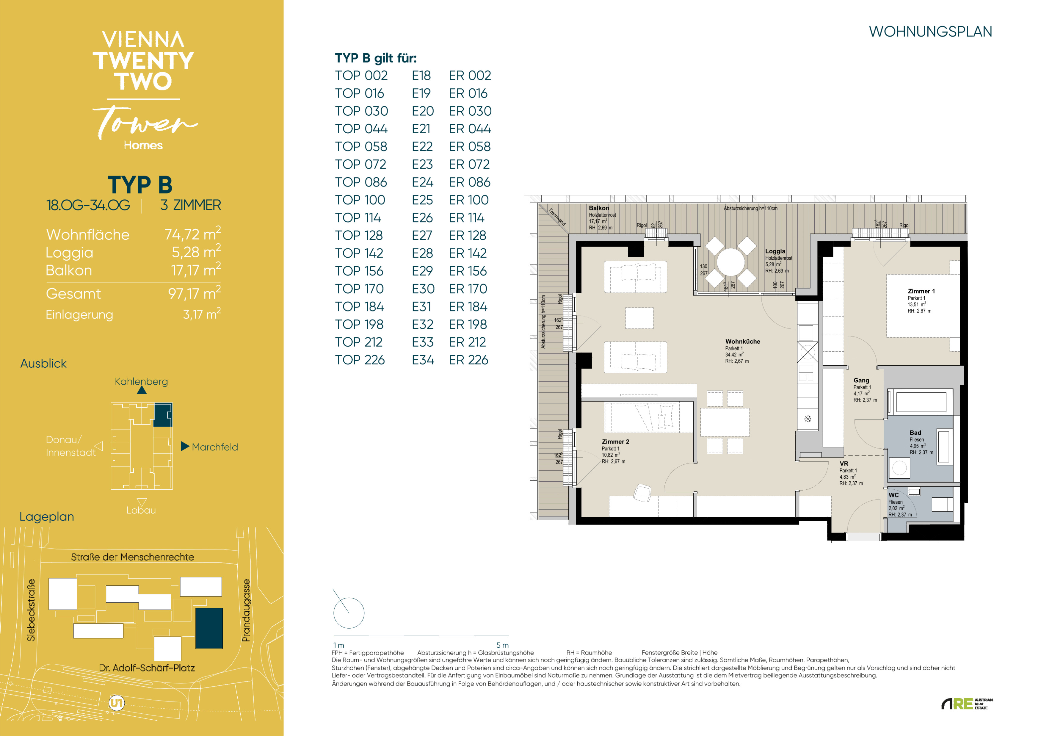 In einzigartiger Lage, direkt bei der U1-Station Kagran und vis-à-vis vom Donau Zentrum, entsteht ein exklusiver, ca. 155m hoher Wohnturm mit 45 Etagen. Die insgesamt 347 Mietwohnungen bieten einen vielfältigen Wohnungsmix: von smart geschnittenen 1,5-Zimmer-Apartments ab ca. 38 m² über komfortable 2-Zimmer-Wohnungen bis hin zu großzügigen 3- und 4-Zimmerwohnungen mit bis zu ca. 80 m².
