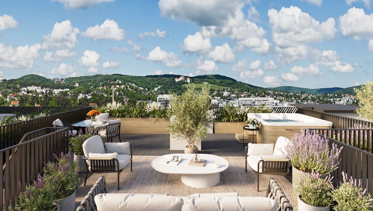Großzügige private Freiflächen wie Eigengärten, Balkone, Terrassen, Loggien sowie beeindruckende Dachterrassen mit Panoramablick schaffen ein einzigartiges Wohngefühl.