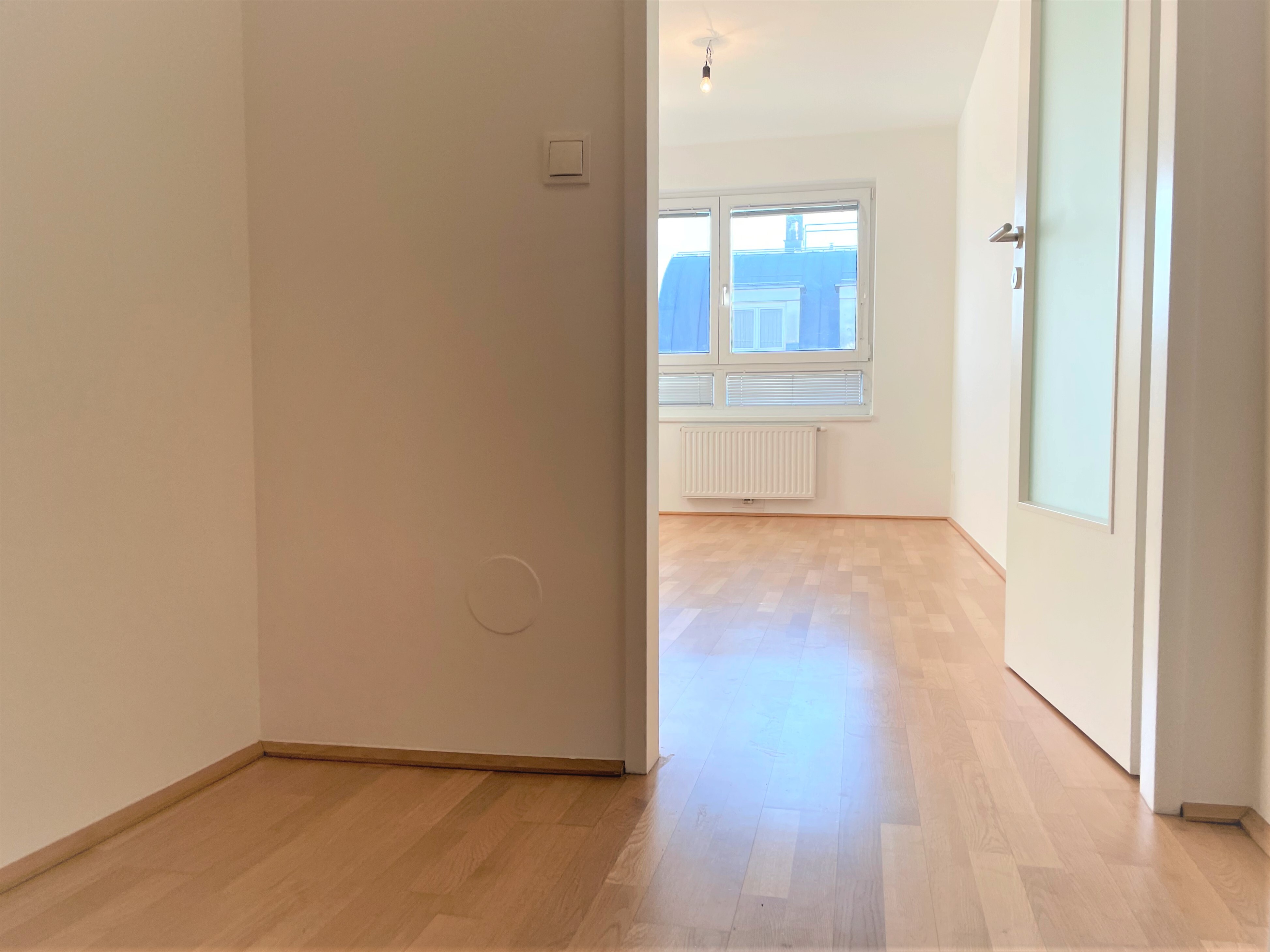 Die Wohnung selbst befindet sich in der 5. Etage und gliedert sich in eine großzügige Wohnküche, ein separat begehbares Schlafzimmer mit einem Zwischenraum, ein Badezimmer mit Badewanne und Waschmaschinenanschluss, ein separates WC, sowie einen Vorraum. Der gemütliche Balkon runter das Wohnerlebnis perfekt ab.