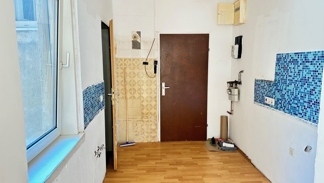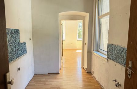 Die Wohnung ist sanierungsbedürftig und eignet sich ideal für alle, die eine Immobilie nach eigenen Vorstellungen gestalten möchten. Ausgestattet ist sie mit Fertigparkett, Fliesen, Kunststofffenstern mit Doppel- bzw. Mehrfachverglasung sowie einem Bad mit Fenster, das viel Tageslicht hereinlässt.