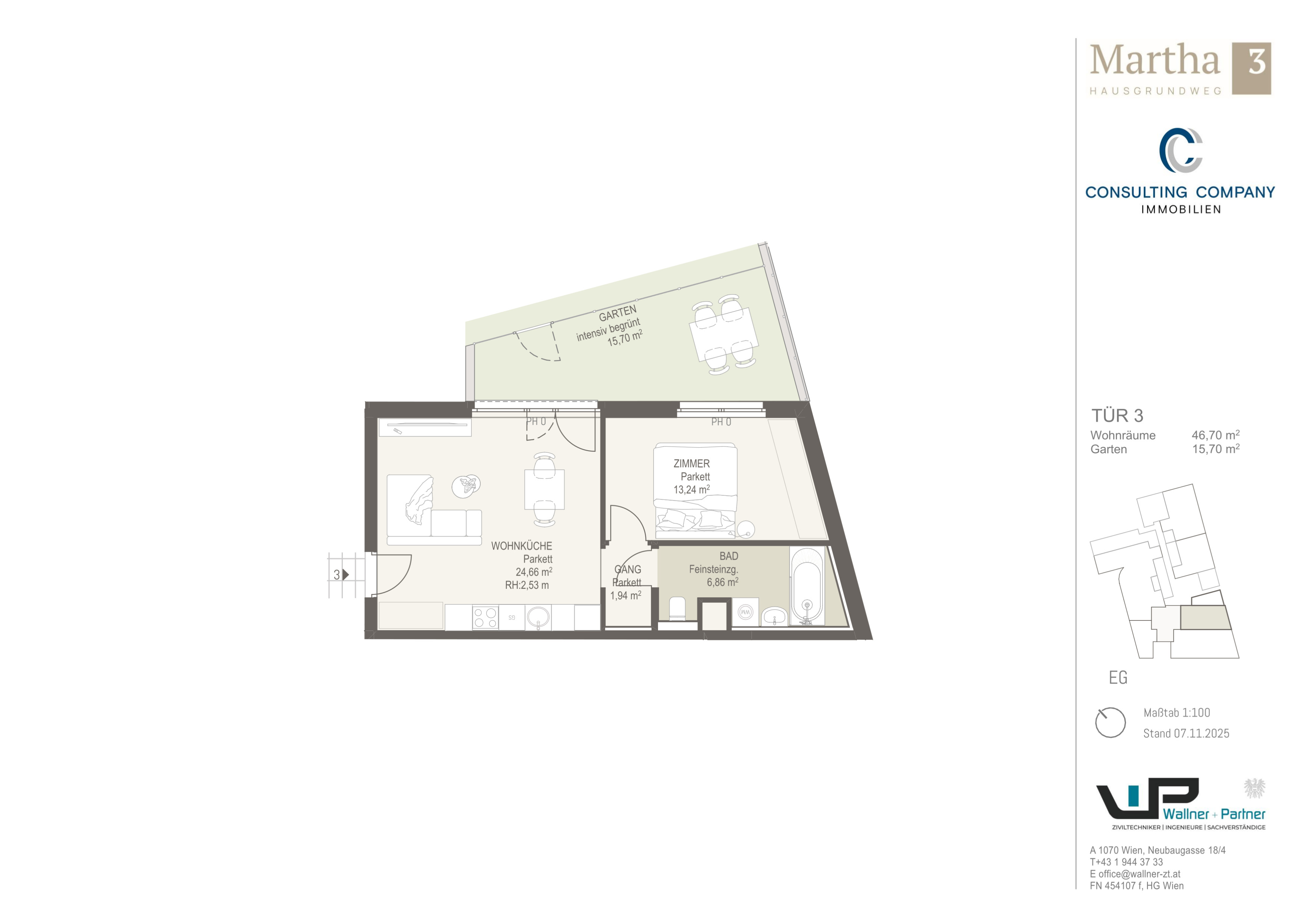 Die Bauweise entspricht modernen Energiestandards – inklusive Fernwärmeanschluss, vorbereiteter Klimaanlage in den Dachgeschoßen und großzügiger Belichtung in allen Wohneinheiten. Die Freiflächen bieten einen hohen Wohnkomfort mit viel Tageslicht und Privatsphäre. Eine Tiefgarage mit optionalen E-Ladestationen rundet das Angebot ab. Ein Stellplatz kann um € 25.000,00 netto erworben werden.