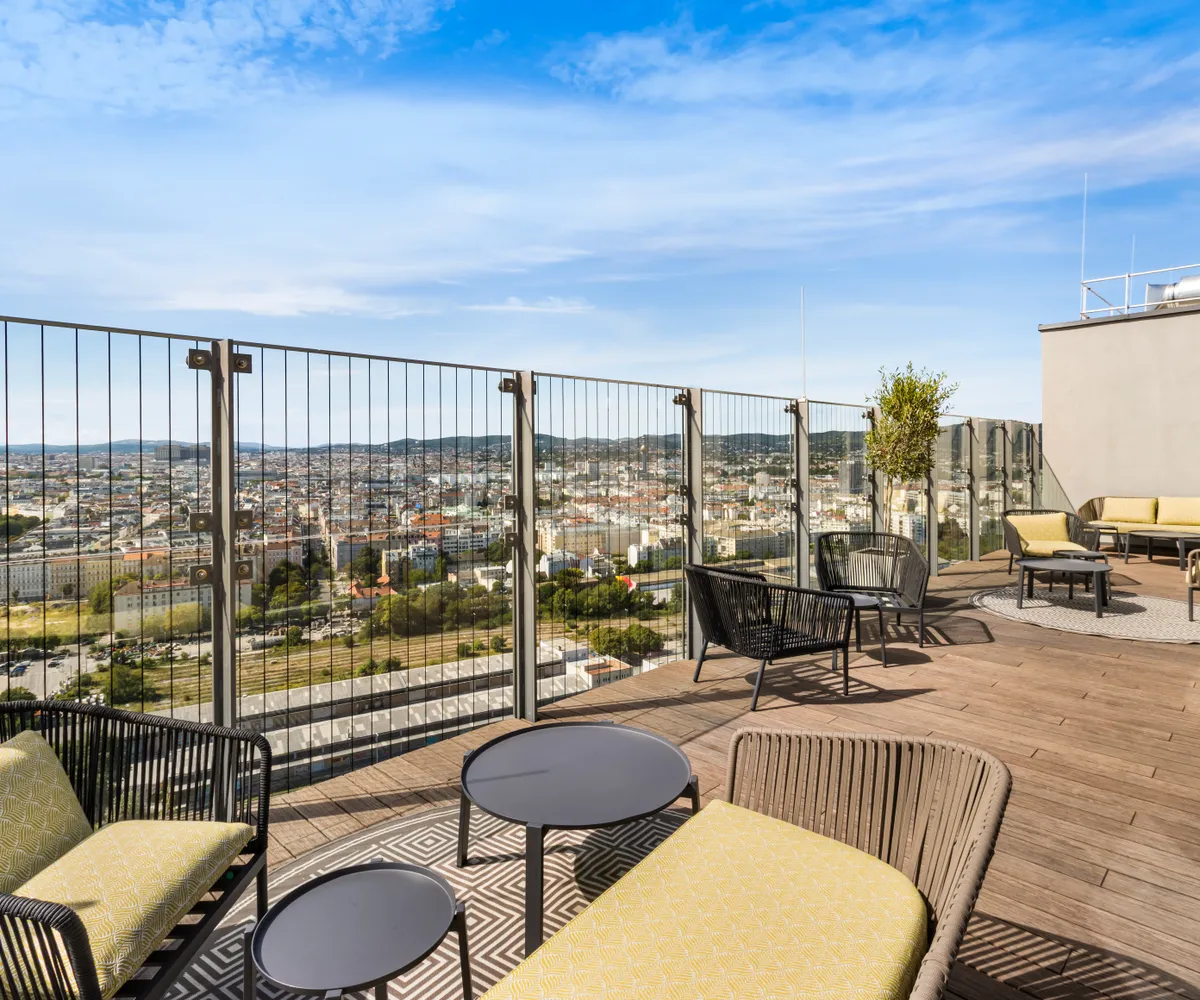Neben Ihrem privaten Wohnbereich profitieren Sie von großzügigen, hochwertig gestalteten Gemeinschaftsflächen, die weit über das Übliche hinausgehen: Ob konzentriertes Arbeiten im Co-Working Space, entspannte Stunden in der stilvollen Bewohner Lounge oder aktive Pausen im hauseigenen Fitness- und Yogastudio – hier finden Sie genau den Ort, den Sie gerade brauchen. Für gesellige Momente stehen Ihnen ein exklusiver Private-Dining-Raum, ein Gaming Room und ein einladender Kinosaal zur Verfügung. Wer kreativ tätig werden möchte, findet im professionell ausgestatteten Podcast Raum den idealen Rahmen. Ein besonderes Highlight ist die grüne Dachterrasse mit Gemeinschaftsgarten – ein Rückzugsort über den Dächern der Stadt, der zum Entspannen, Gärtnern und Genießen einlädt.