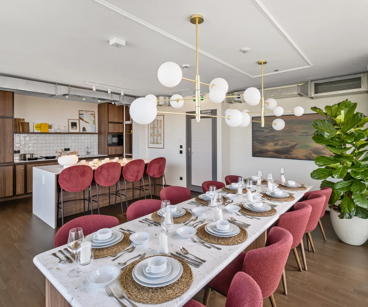 Neben Ihrem privaten Wohnbereich profitieren Sie von großzügigen, hochwertig gestalteten Gemeinschaftsflächen, die weit über das Übliche hinausgehen: Ob konzentriertes Arbeiten im Co-Working Space, entspannte Stunden in der stilvollen Bewohner Lounge oder aktive Pausen im hauseigenen Fitness- und Yogastudio – hier finden Sie genau den Ort, den Sie gerade brauchen. Für gesellige Momente stehen Ihnen ein exklusiver Private-Dining-Raum, ein Gaming Room und ein einladender Kinosaal zur Verfügung. Wer kreativ tätig werden möchte, findet im professionell ausgestatteten Podcast Raum den idealen Rahmen. Ein besonderes Highlight ist die grüne Dachterrasse mit Gemeinschaftsgarten – ein Rückzugsort über den Dächern der Stadt, der zum Entspannen, Gärtnern und Genießen einlädt.