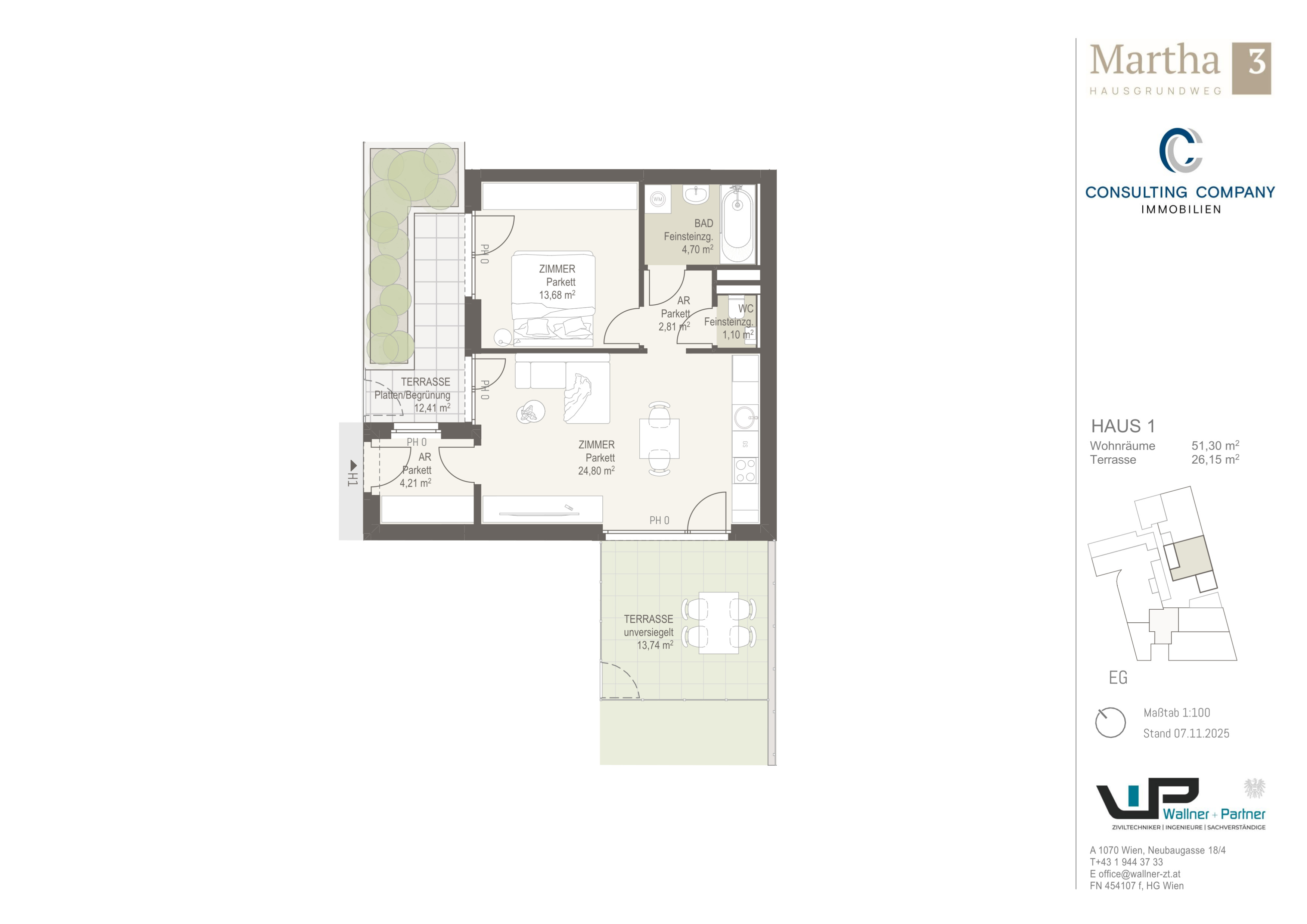 MARTHA liegt in der Donaustadt, im Umfeld der Erzherzog-Karl-Straße – urban, gut angebunden und dennoch angenehm ruhig. Einkaufsmöglichkeiten, Schulen, Kindergärten und medizinische Versorgung befinden sich in unmittelbarer Nähe.