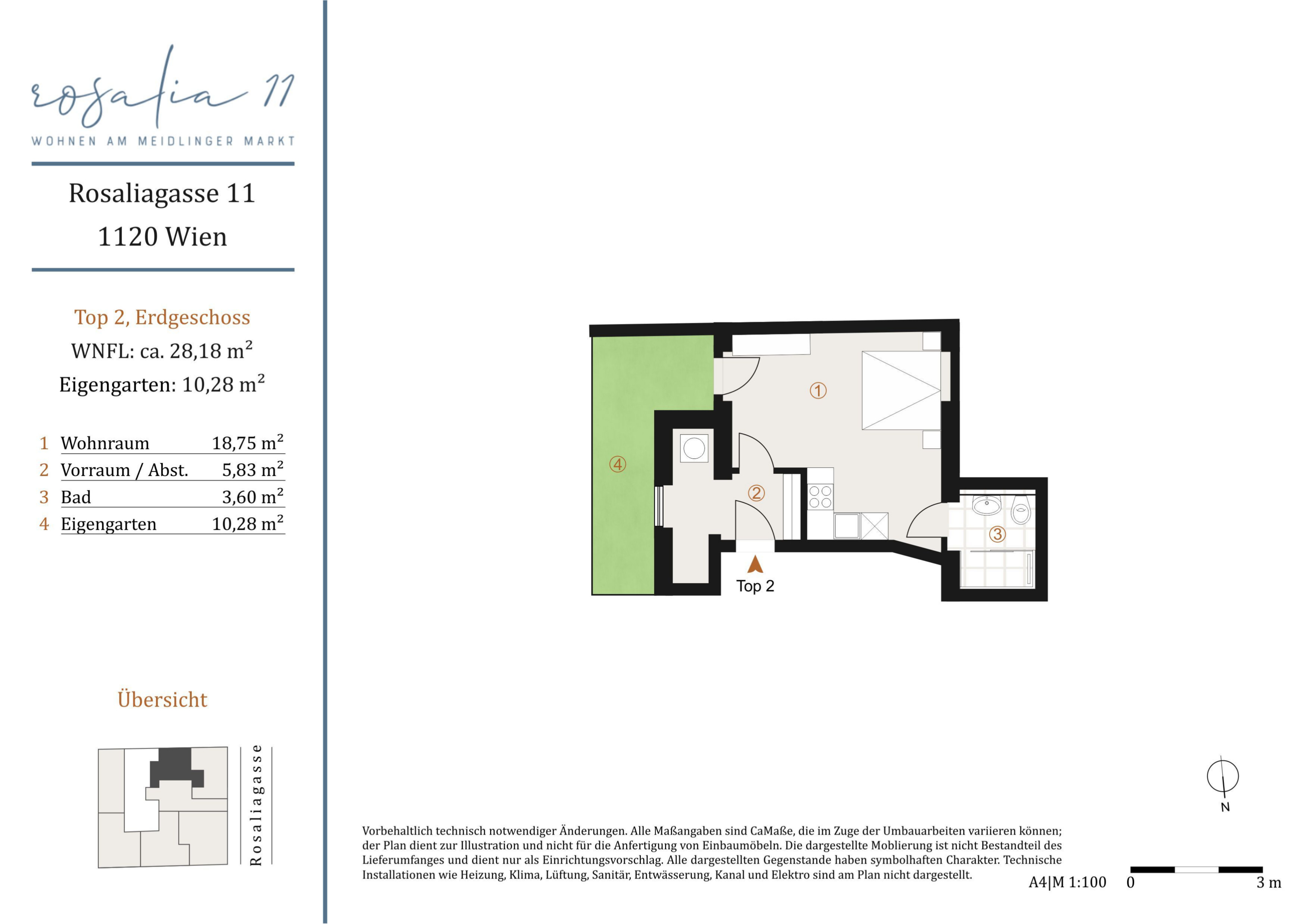 Ergänzt wird die Einheit durch einen praktischen Vorraum bzw. Abstellbereich sowie ein funktional ausgestattetes Badezimmer. Besonders hervorzuheben ist der ca. 10,28 m² große Eigengarten, der zusätzlichen Wohn- und Aufenthaltswert im Freien schafft und die Attraktivität der Einheit deutlich erhöht.