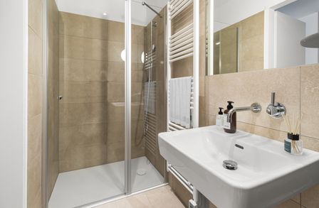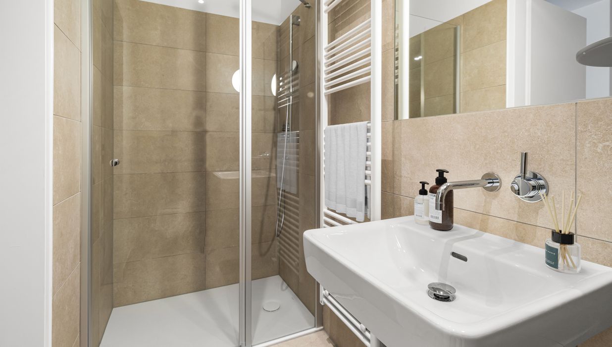 * hochqualitatives Feinsteinzeug in den Nassräumen