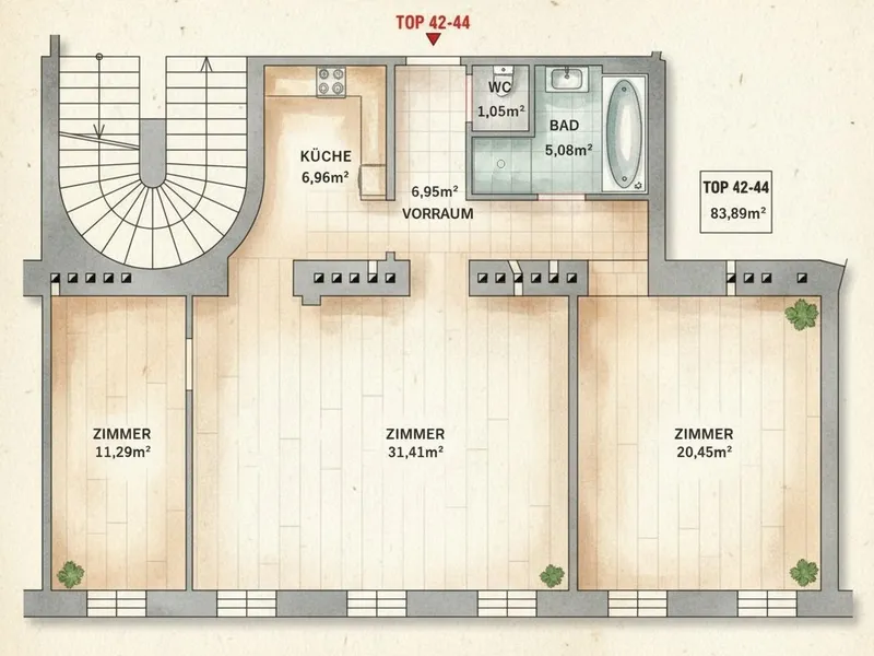 zzgl. Heizkosten zwischen € 1,24 brutto/m² und € 1,89 brutto/m²