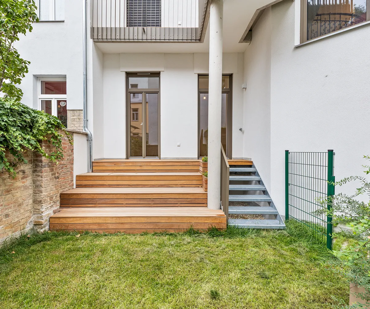 Es entstehen 22 Wohneinheiten, die fast alle über Freiflächen (Garten/Balkon/Terrasse) verfügen. Weiters wird die Liegenschaft generalsaniert.