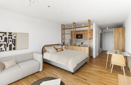 Neben Ihrem privaten Wohnbereich profitieren Sie von großzügigen, hochwertig gestalteten Gemeinschaftsflächen, die weit über das Übliche hinausgehen: Ob konzentriertes Arbeiten im Co-Working Space, entspannte Stunden in der stilvollen Bewohner Lounge oder aktive Pausen im hauseigenen Fitness- und Yogastudio – hier finden Sie genau den Ort, den Sie gerade brauchen. Für gesellige Momente stehen Ihnen ein exklusiver Private-Dining-Raum, ein Gaming Room und ein einladender Kinosaal zur Verfügung. Wer kreativ tätig werden möchte, findet im professionell ausgestatteten Podcast Raum den idealen Rahmen. Ein besonderes Highlight ist die grüne Dachterrasse mit Gemeinschaftsgarten – ein Rückzugsort über den Dächern der Stadt, der zum Entspannen, Gärtnern und Genießen einlädt.