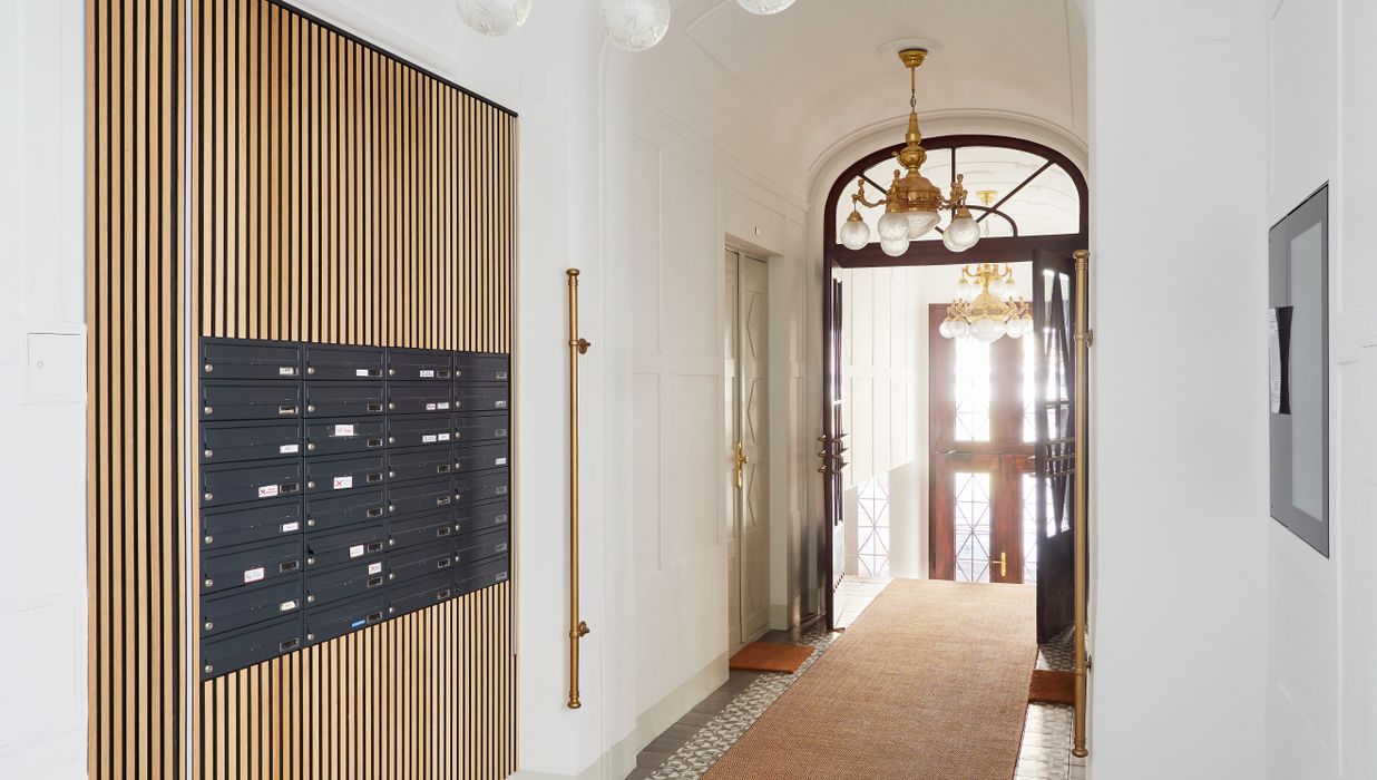 Auch die Wohnungen selbst vereinen das klassische Altbauflair mit modernem Wohngefühl: Elegante Fischgrätparkettböden, großzügige Raumhöhen und stilvolle Details wie Stuckverzierungen an den Decken, verleihen den Räumen ein einzigartiges Ambiente.