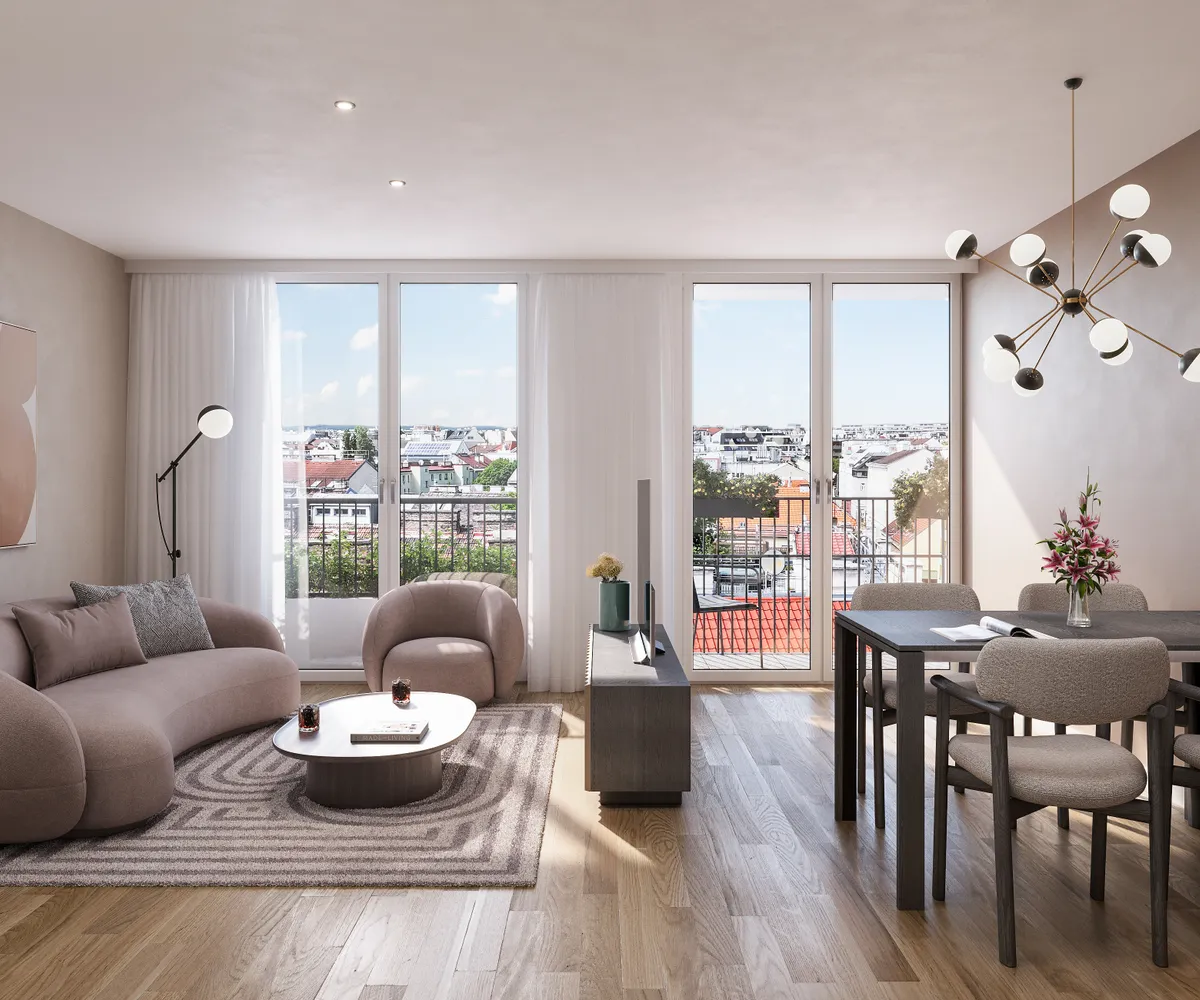 in innovativen Eigentumswohnungen im Herzen von Rudolfsheim-Fünfhaus – nur drei Minuten zu Fuß zur U6.