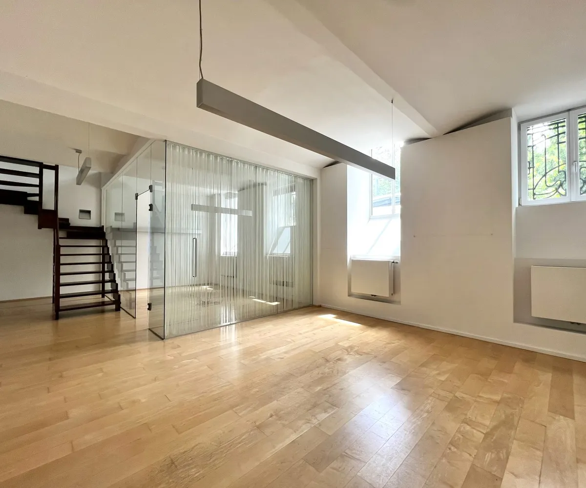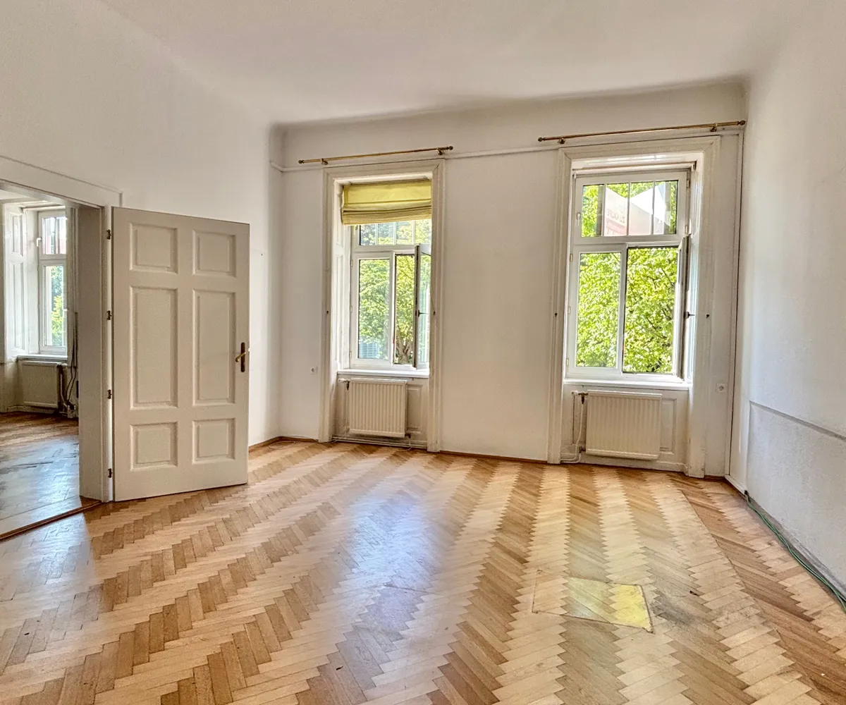 Die große 5-Zimmer-Hochparterrewohnung und das 2-Zimmer-Souterrain werden auch von der gut frequentierten Straße aus gesehen und eignen sich miteinander daher ideal als repräsentatives Büro, als Kanzlei oder Privatordination. Die hohen Altbauräume in Verbindung mit den Parkettböden vermitteln eintretenden Personen ein gediegenes Ambiente. Über eine breite Holztreppe gelangt man in das sehr schön ausgebaute und helle Souterrain. OPTION: Die Wohnung kann auch ohne Souterrain gekauft werden: es verbleiben dann 118m² Wohnfläche zum Preis von € 499.000,--. Die Verbindung zwischen Wohnung und Souterrain erfolgt durch den Verkäufer)