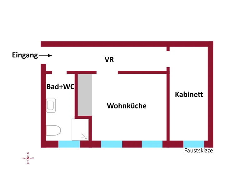 kompakt geschnittene 2-Zimmer-Wohnung.
