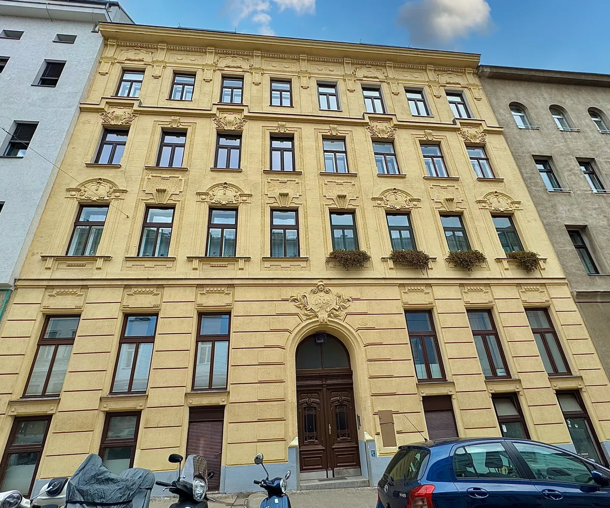 Die Wohnung befindet sich im Erdgeschoss eines ansehnlichen Wiener Altbaus , dies spiegelt auch die Wohnung mit einer luftigen Raumhöhe von ca. 3,50m wider.