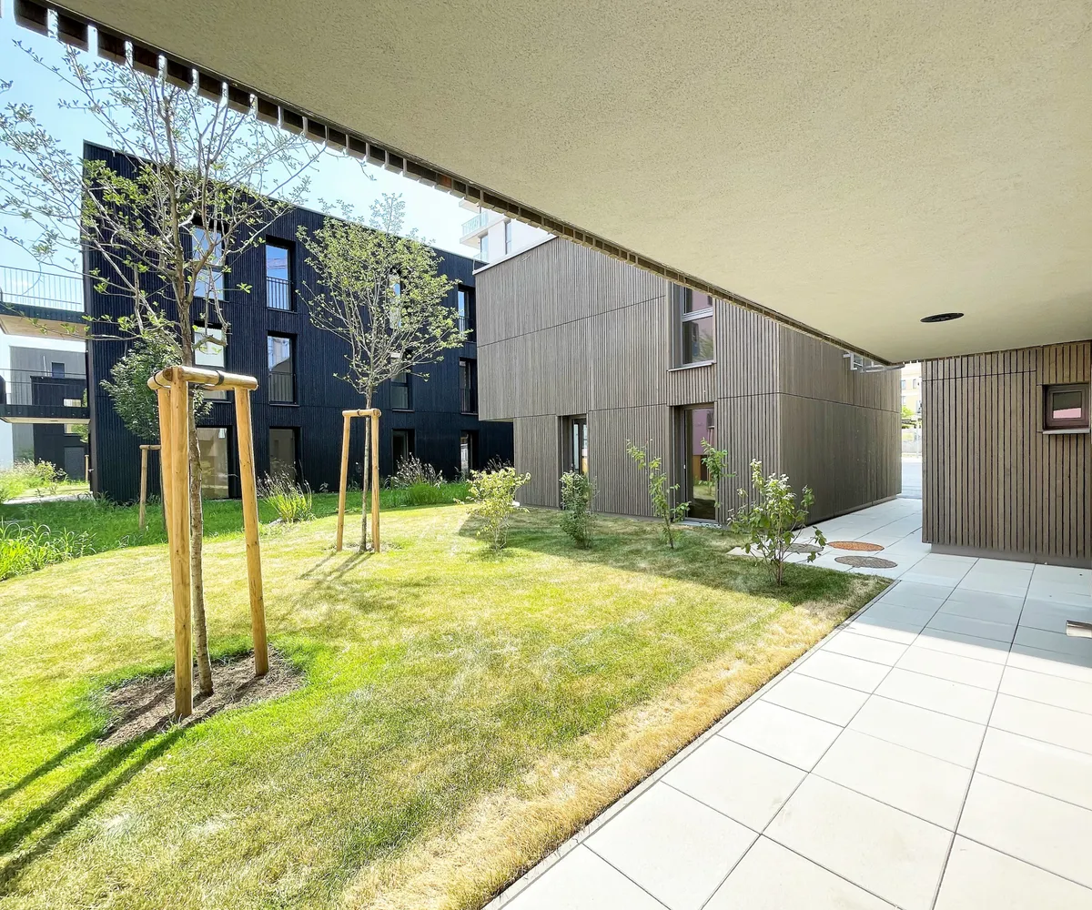 Das Highlight des Projekts WILDGARTEN ist zweifellos der einladende Gemeinschaftsgarten. Hier finden Bewohner einen Ort der Entspannung und des sozialen Miteinanders. Eine gepflegte Grünanlage lädt zum Verweilen und Genießen ein, während Kinder sich auf dem Spielplatz austoben können. Zudem profitieren die Bewohner von einer perfekten Nahversorgung mit Geschäften, Supermärkten und Restaurants in unmittelbarer Nähe.