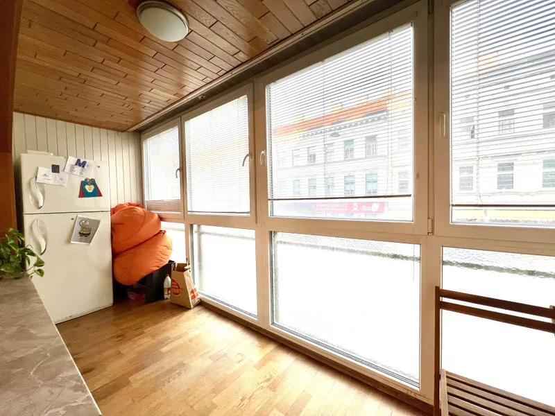 Diese ca. 90 m² große Eigentumswohnung im 1. Liftstock eines gepflegten Wohnhauses bietet viel Potenzial , um sich den Traum eines individuellen Zuhauses zu verwirklichen. Die großzügige Raumaufteilung sowie die ca. 8 m² große Loggia machen die Wohnung besonders attraktiv. Die Schlafzimmer sind zum ruhigen Innenhof ausgerichtet, während Wohnzimmer und Küche zur Straße zeigen.