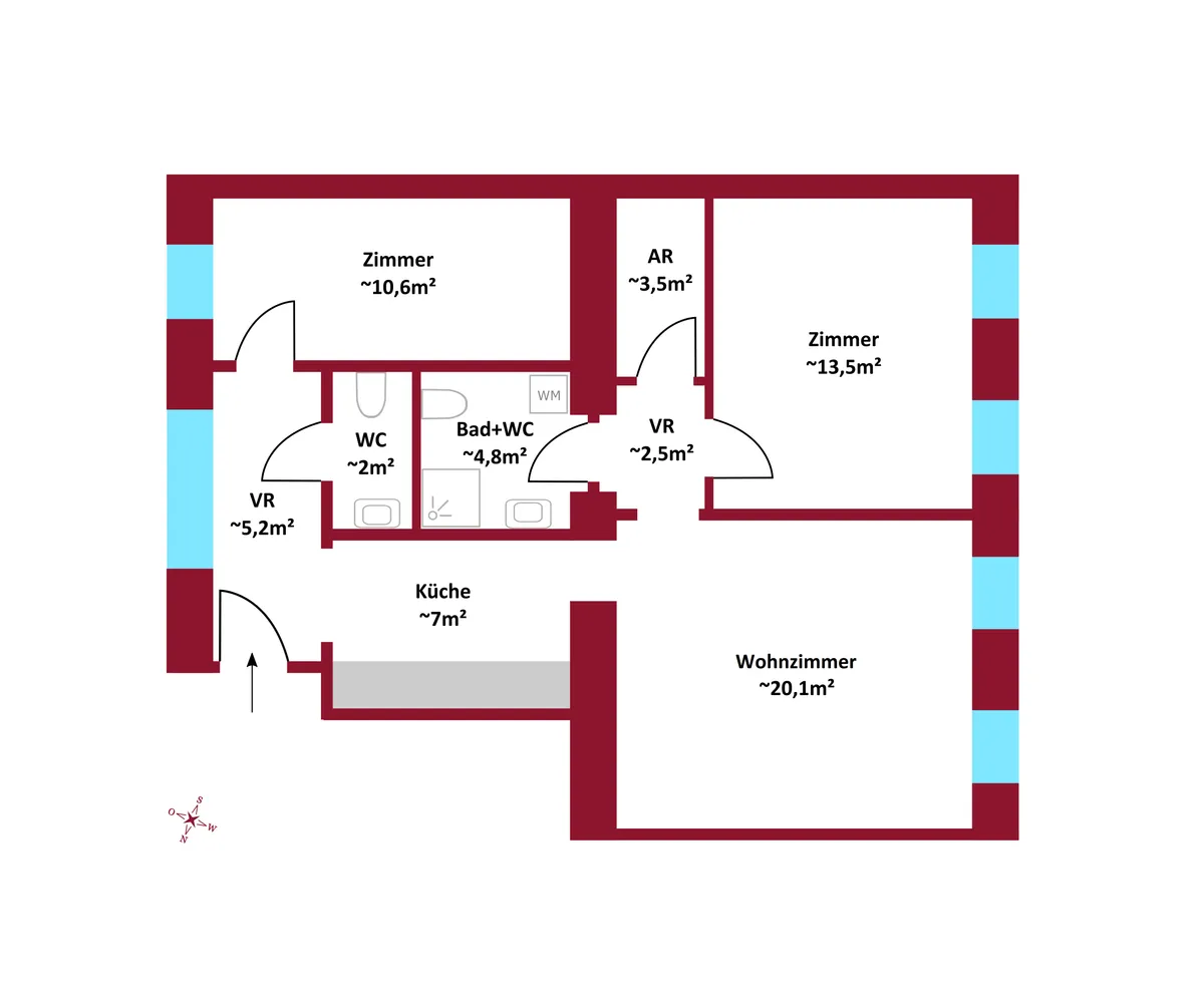 Auf einer Wohnfläche von ca. 69,23 m² erwartet Sie folgende Raumaufteilung: