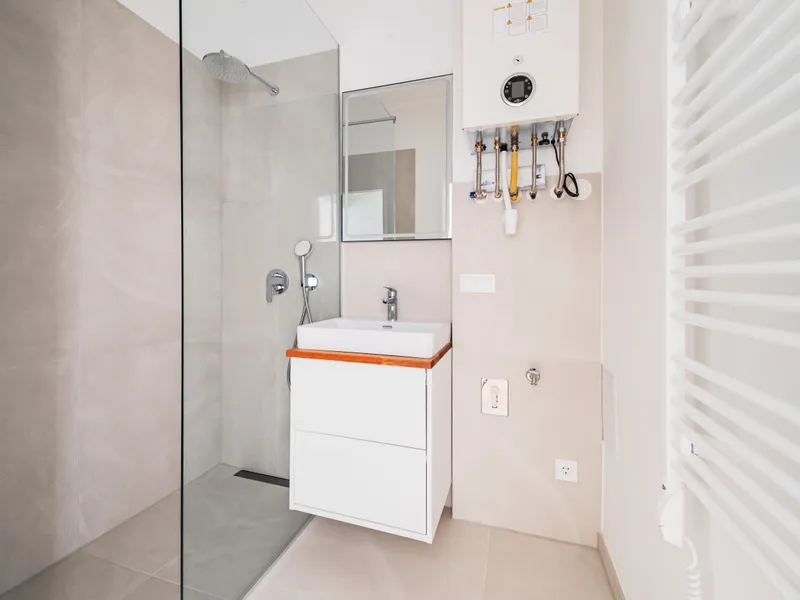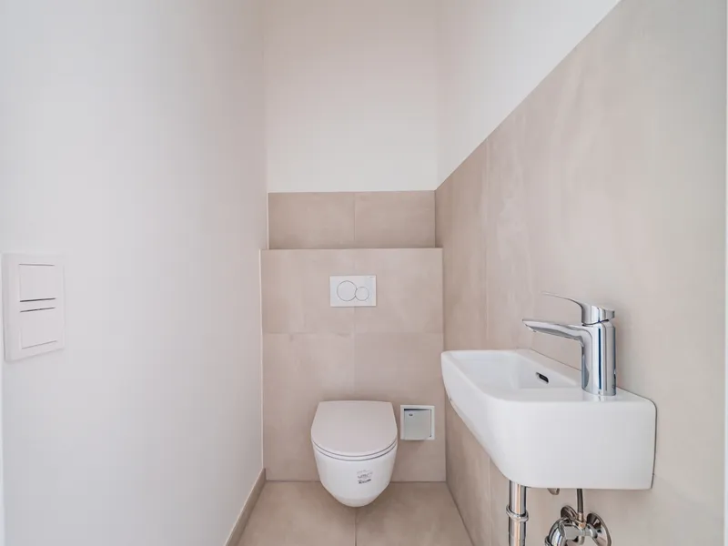 Die Beheizung und Warmwasseraufbereitung erfolgen umweltfreundlich durch ein modernes Luft- und Wasserwärmepumpensystem – eine nachhaltige Lösung für zeitgemäßes Wohnen.